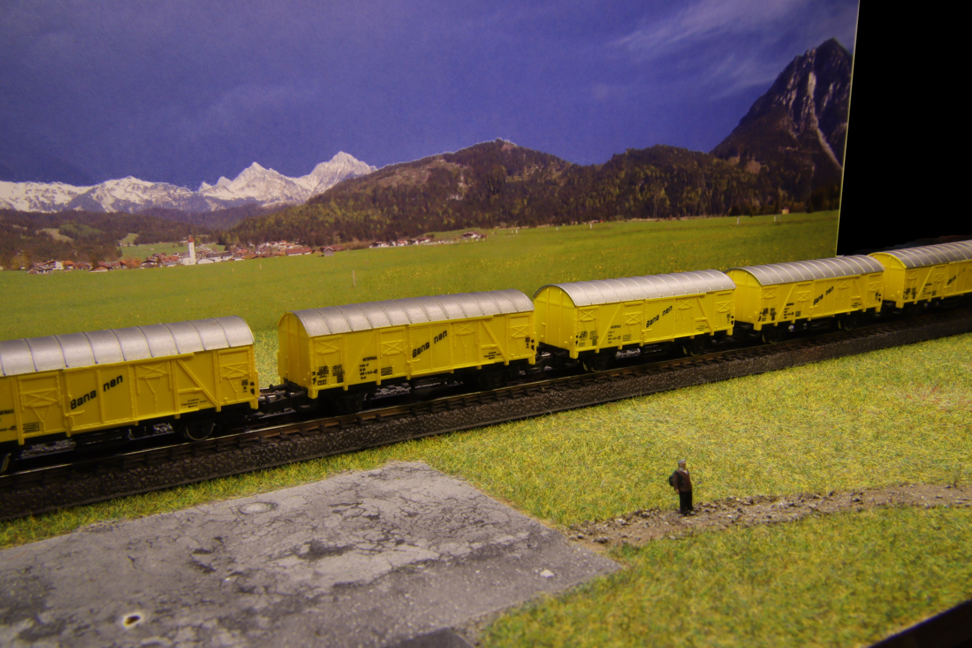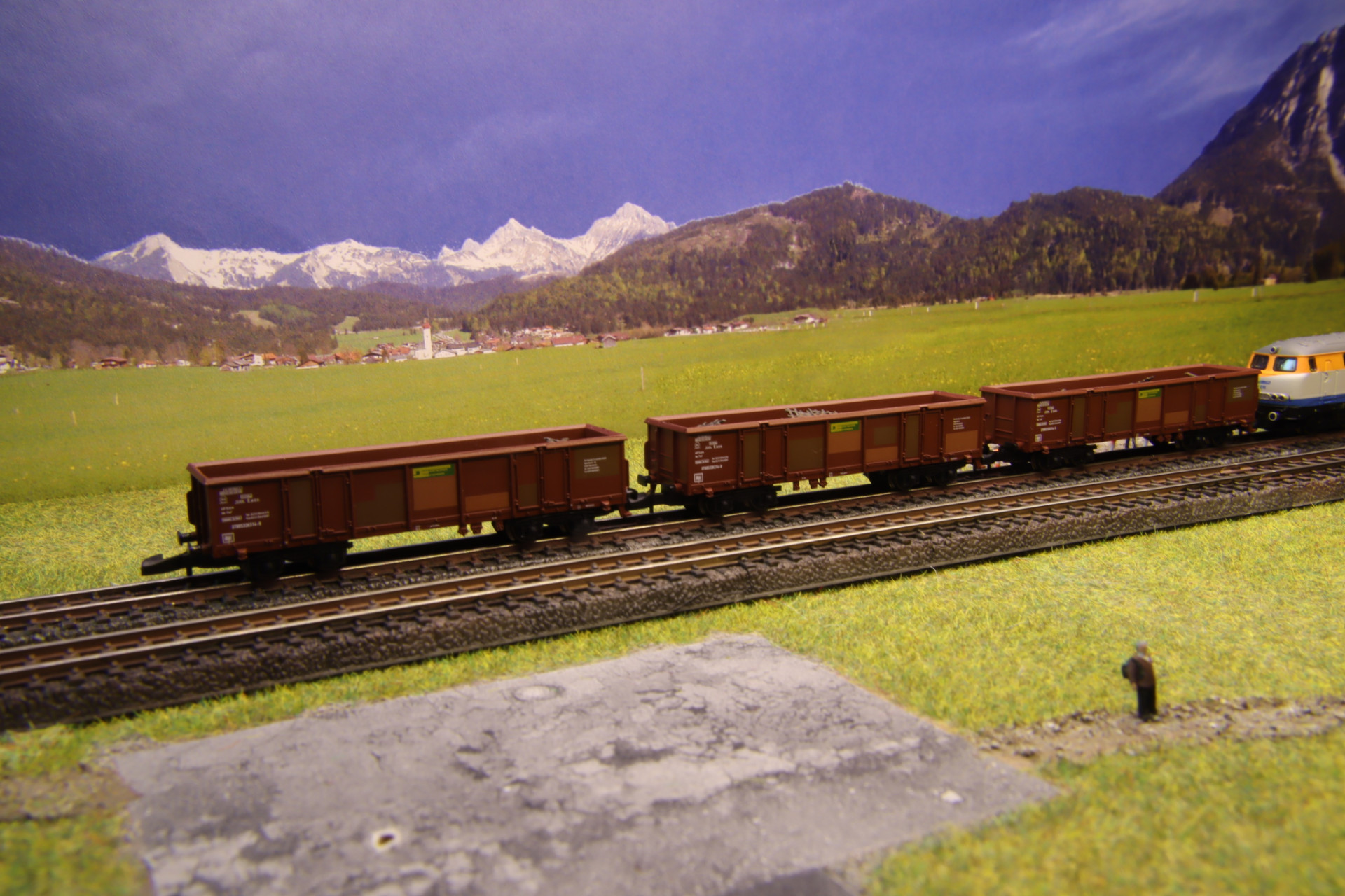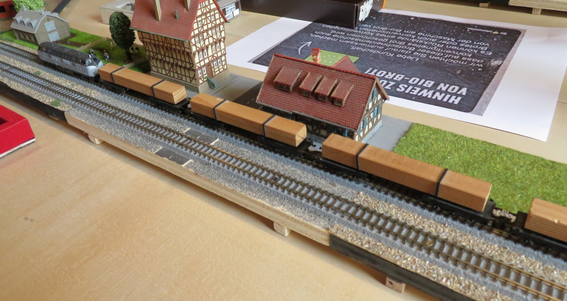 ....und damit der Zug auch funktionsfähig aussieht, sollen die leeren Güterwagen beladen sein ..................