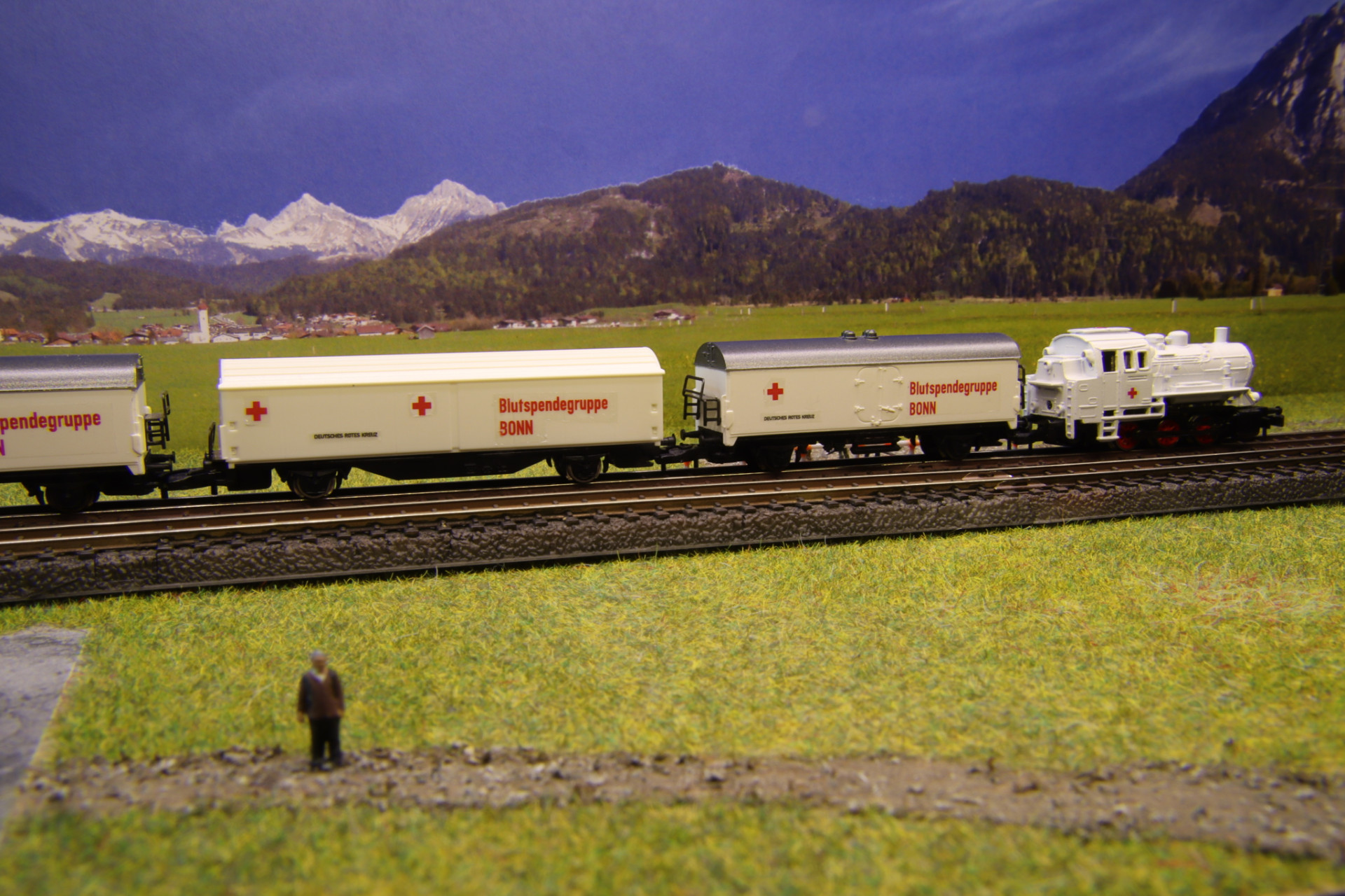 Zum Start durfte eine Farbliche Angepasste BR89 "DRK" mit passenden Waggons aufs Gleis