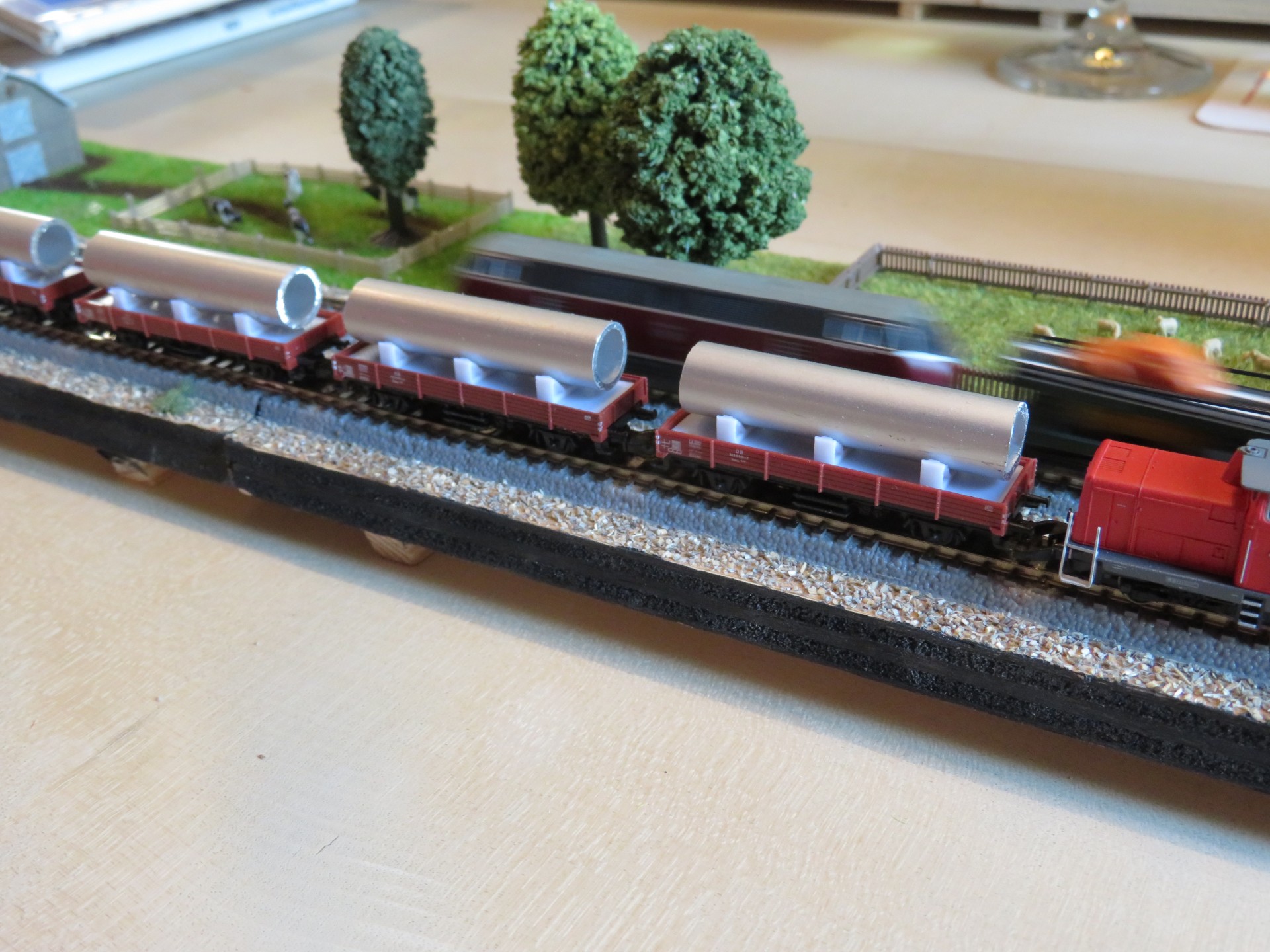 wenn Du den Schrottzug meinst, ist aus dem Winkel nicht zu sehen. Da gibt es Ladegut. Das sind die Wagons von der Intermodellbau 2021z-küpper hat geschrieben: So 6. Feb 2022, 17:50 ....und damit der Zug auch funktionsfähig aussieht, sollen die leeren Güterwagen beladen sein ..................