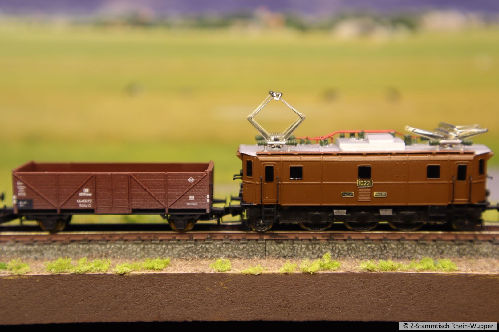 und weiter mit einer Ae3/5 aus dem Hause Freudenreich mit einem internationalen Güterzug