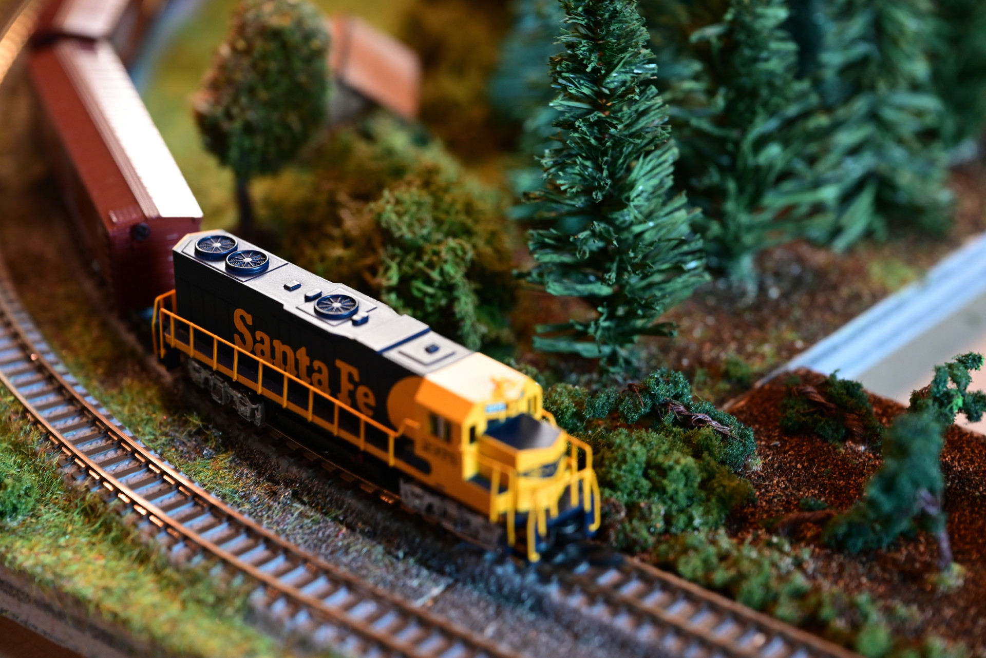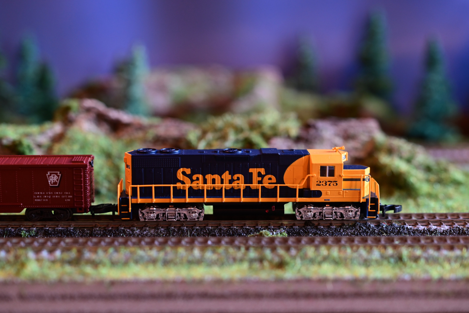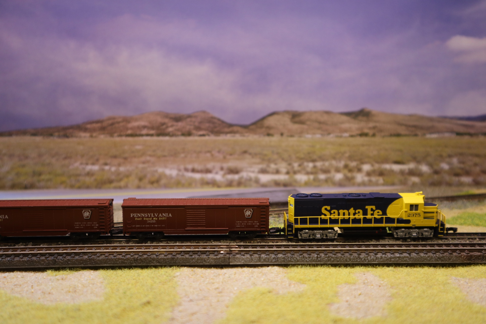 Nun zu den Zügen, 2375 der Santa Fe mit einem Güterzug