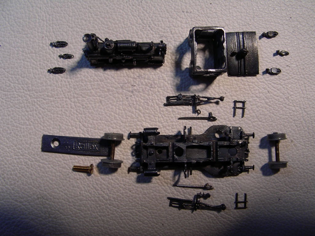 Laternen von der Lok abnehmen und Löcher in die Laternen bohren durch die später das Licht scheinen soll. Dann die Laternen mit dem Gesicht nach unten in den Maschinen-Schraubstock einer Fräsmaschine einspannen und mit einem kleinen Fräser in der Laterne Platz für die LED schaffen. LED 0402 in der gewünschten Farbe verdrahten und mit einem Tröpfchen Sekundenkleber in die Laterne kleben. Mit schwarzer Farbe die Laterne von hinten lichtdicht lackieren und von vorne den Reflektor mit weißer Farbe anlegen. Und schon ist eine Laterne einbaufertig. Ein Loch für den Lackdraht nahe des Laternenstandorts in Umlauf und Kessel bohren und die Laternen wieder anbringen. Für den Stromanschluss habe ich mir immer eine kleine Platine gemacht, auf der ein Widerstand und Lötpunkte für die Lackdrähte der Laternen Platz haben. Die Platine wird im Fahrwerksrahmen untergebracht.