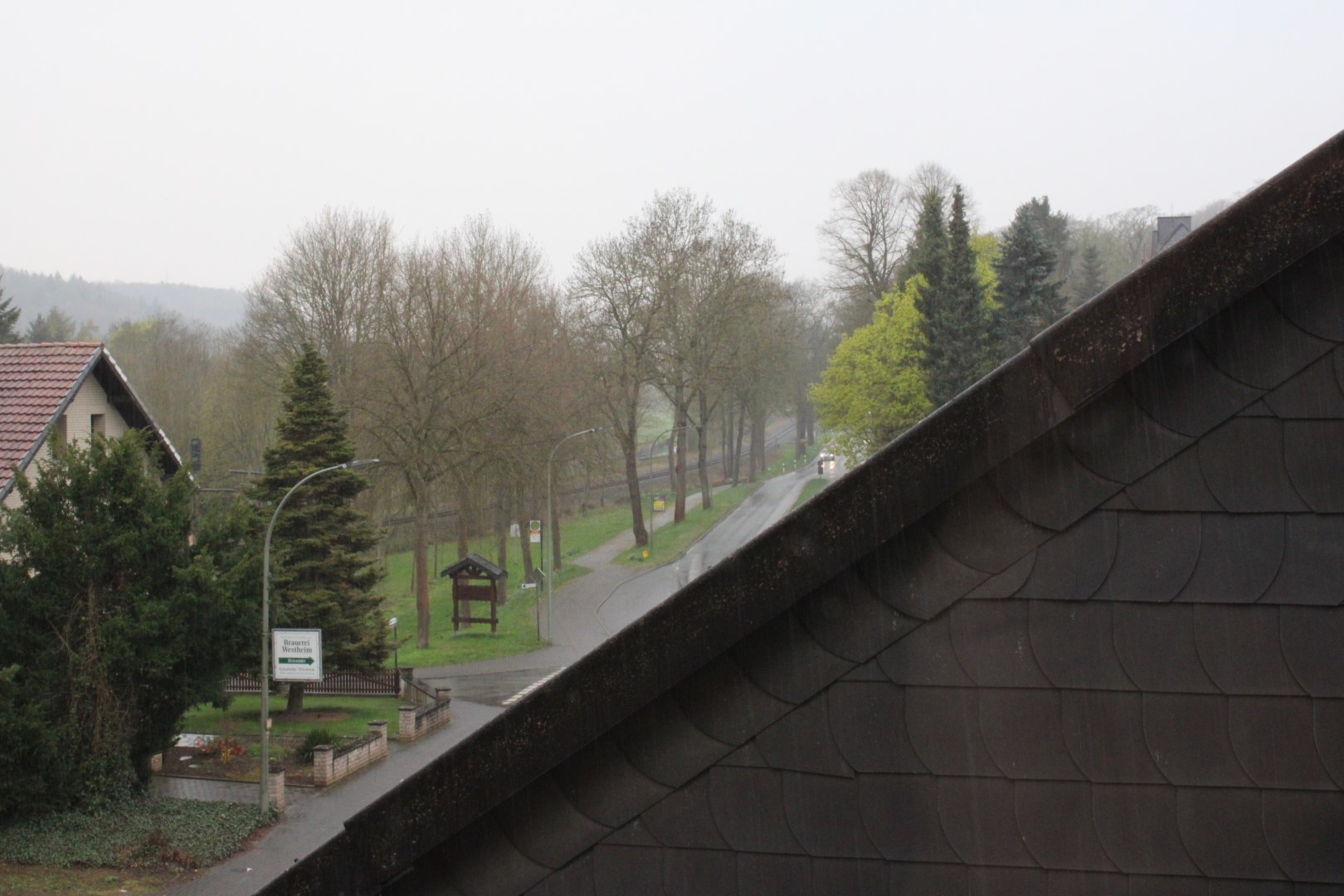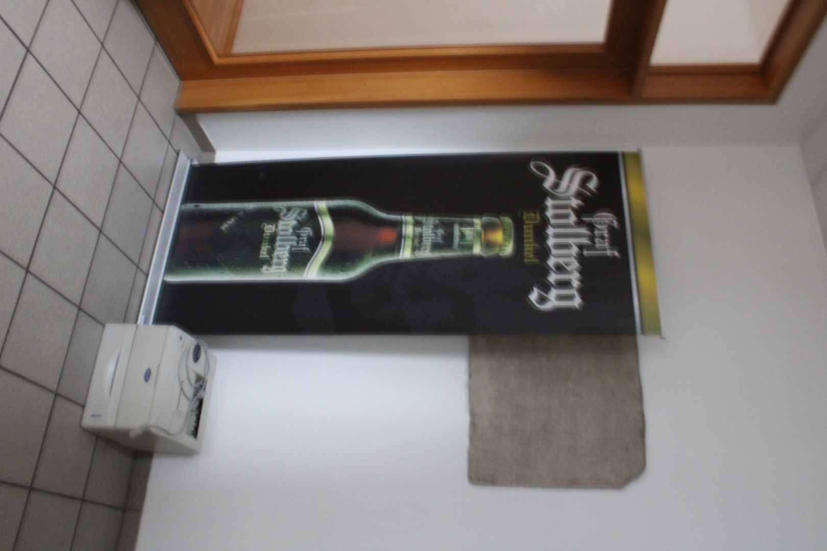 Auf dem Weg ins Obergeschoss wartet ein einsames Faß Bier: