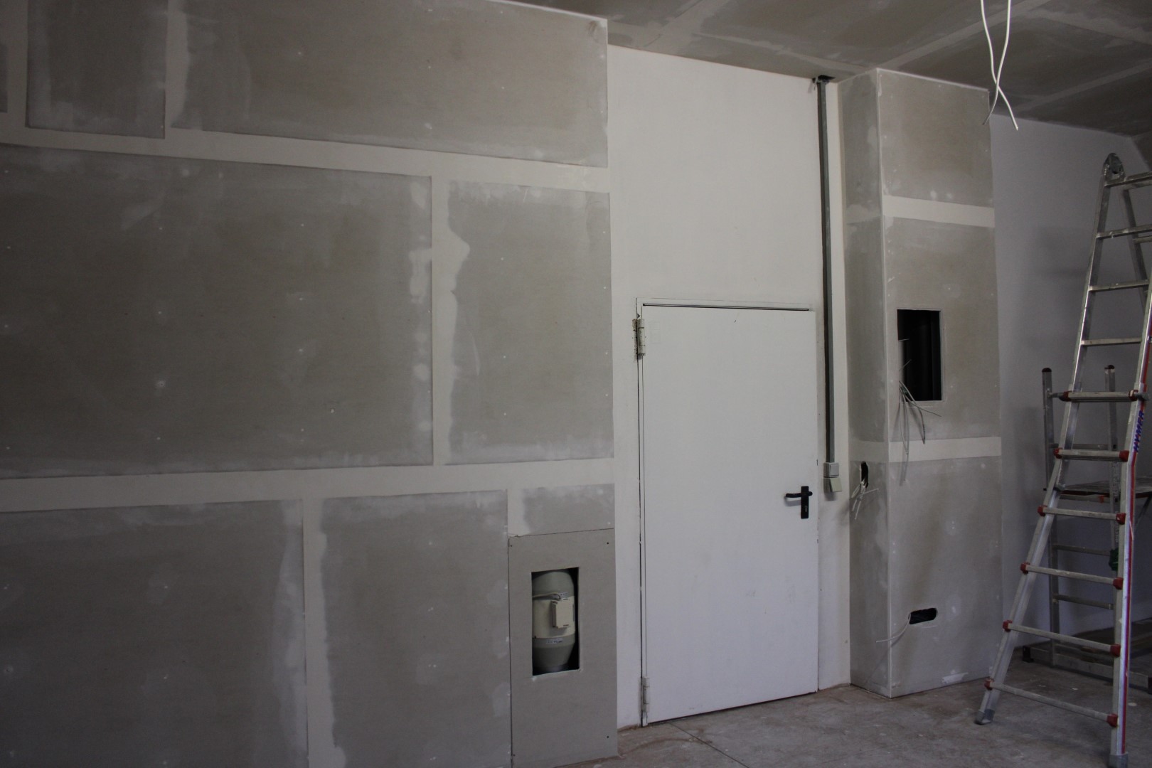Im Ausstellungsraum wird gemalt, die Wände werden dieses Wochenende weiß: