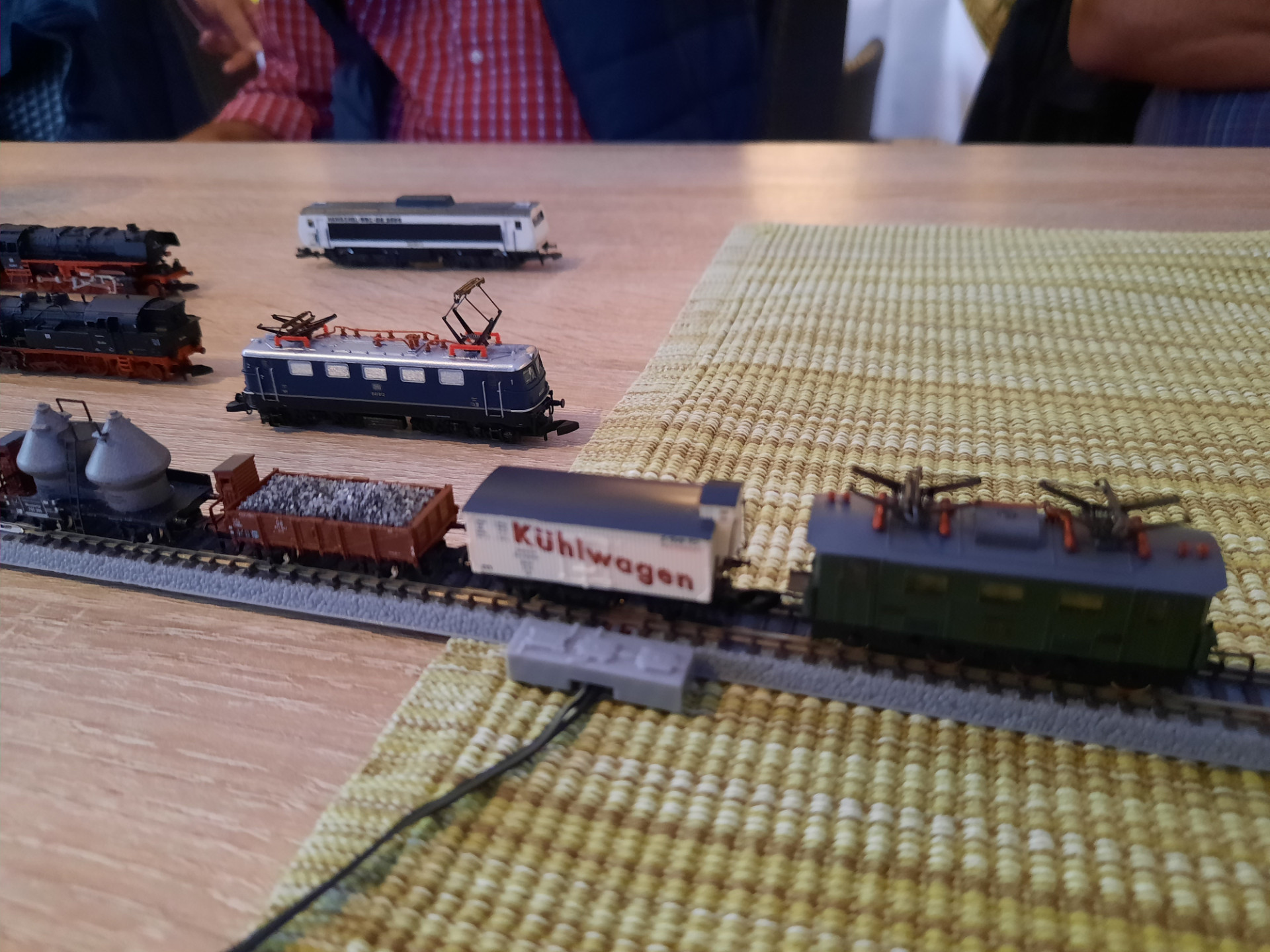 so, auch unser zweites Treffen ist gestern mit sechs Teilnehmern - zwei Zetties waren verhindert - wieder ganz interessant und informativ abgelaufen. Für die mitgebrachte Modelle sollte es auf einem kleinen Rundkurs eigentlich ausreichend Betrieb geben. Aber die vorhandene Technik spielte da (aufgrund von Abstimmungsproblemen bei der mitgebrachten Hardware) nicht mit und so mußte ersatzweise eine kurze Gleisstrecke für zumindest etwas Bewegung herhalten. Ein Lerneffekt für das nächste Mal, sollte künftig nicht wieder passieren. Aber nicht nur dadurch war für ausreichend Gesprächsstoff gesorgt. Gegen 21 Uhr sind dann alle Beteiligten offenbar zufrieden - und auch gesättigt - wieder von dannen gezogen.