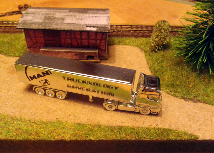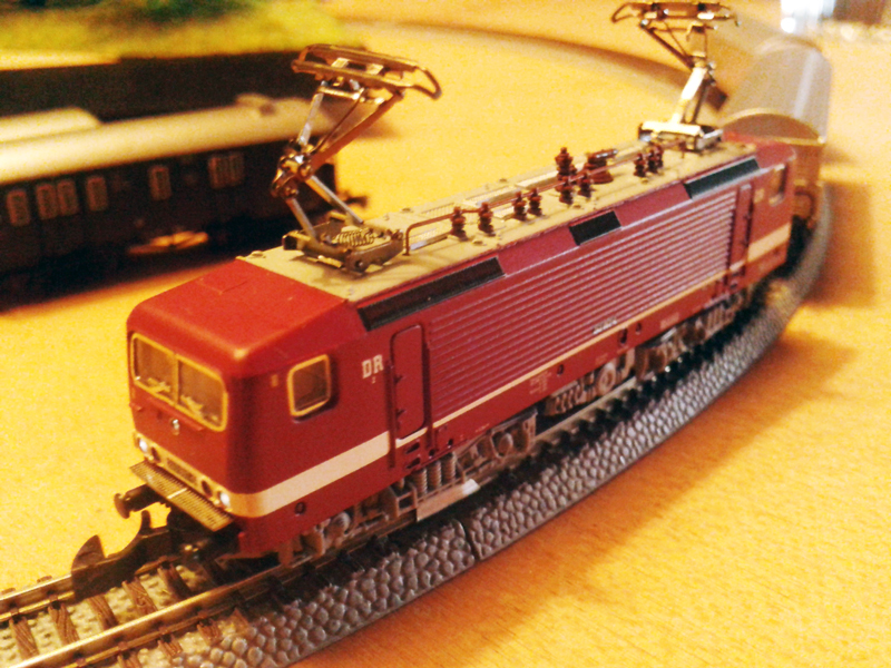 letzten Freitag waren wir eine kleine aber feine Runde. Ein neuer Besucher hat uns beehrt, Michael aus Werne. Torsten brachte seine neu erworbene weinrote E 243 (88436) mit, die dann auf unserem MTL-Testkreis ihre ersten Runden drehte. Super Fahreigenschaften und problemloses Anfahren bei geringer Stromspeisung. Letztendlich gab es dann Fotoposing auf meinem neu erstellten Diorama, bestehend aus einem kleinen alten Güterschuppen, einem Vorplatz zur Beladung von Lkws und einer kleinen Auswahl von Tannen. Das Modul ist noch nicht fertiggestellt. Wie ihr sehen könnt, parkt gerade ein MAN-Silberling vor dem Schuppen (Original-MAN-Modell).