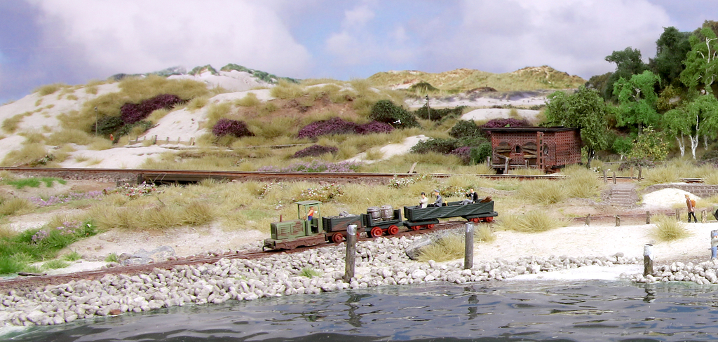 Wenn man in Z Feldbahnen oder wie in diesem Fall eine Hallig-Lorenbahnen bauen möchte, so kann man das auch in 1:220 tun, was diese Bilder aufzeigen mögen:norm24 hat geschrieben: Mi 23. Jan 2019, 11:43 Eigentlich bist Du weder in Spur Z noch in Spur N unterwegs. Du benutzt das Schienenmaterial dieser Spuren für Modelle in HOe bzw HOf. ....