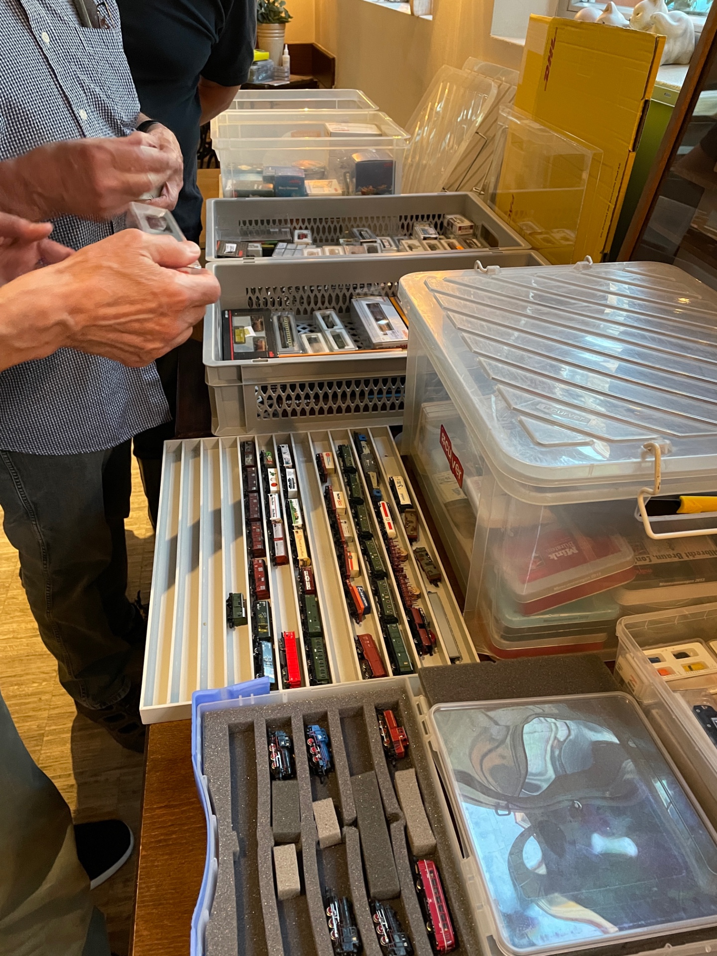 Die Stimmung gehoben hat die Märklinlieferung mit unseren Stammtischwagen, siehe oben. Es sind noch Wagen verfügbar. Wer wer welche möchte wendet sich an Manfred (m.frey2@arcor.de). Er bringt bestimmt beim nächsten Stammtischtermin nochmal ein paar Wagen mit - für diejenigen, die aus welchen Gründen auch immer heute noch keinen Wagen bekommen haben. Bei den Märklintagen werde ich auch noch welche dabeihaben.