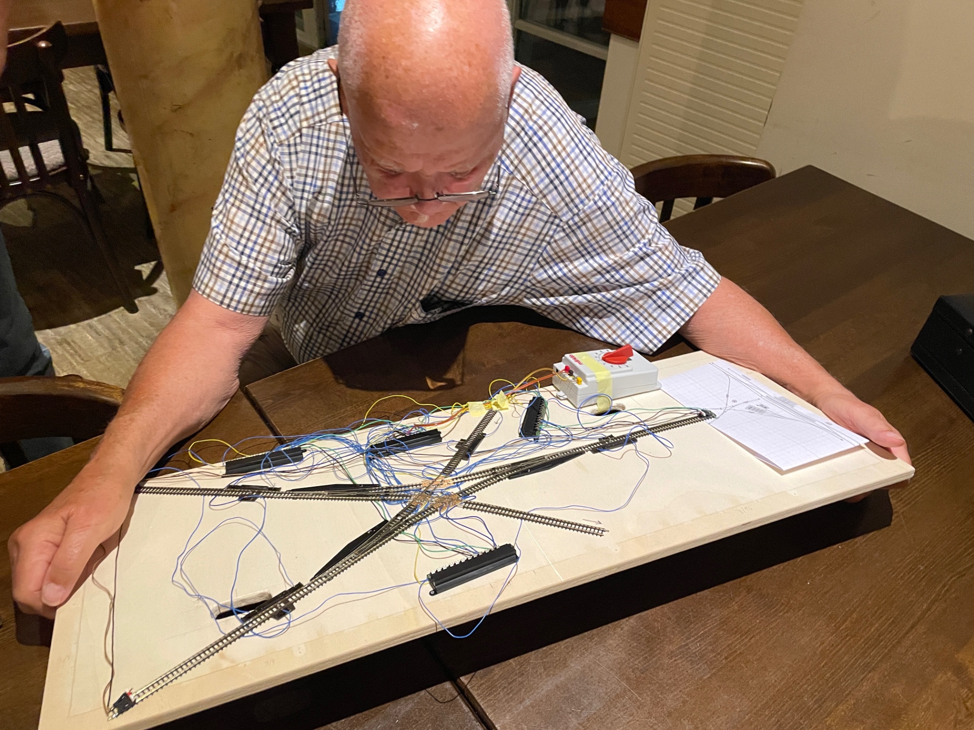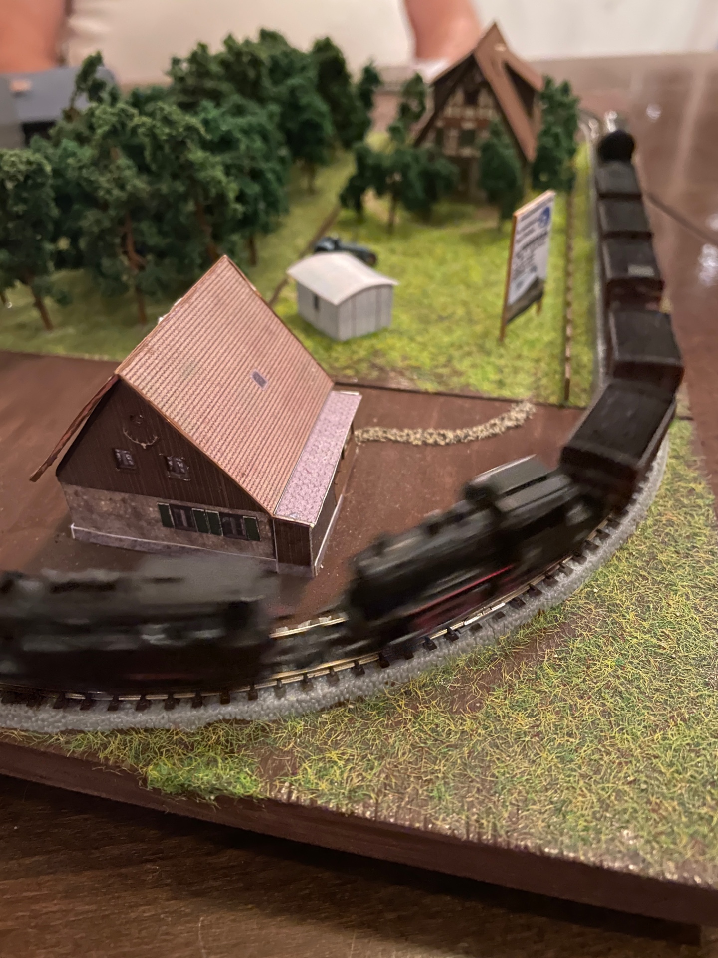 Karl hat gezeigt, wie MBZ-Gebäude farblich behandelt werden, Volker hat seine neuen Schneebrettchen gezeigt, Jürgen hatte eine uralte BR 216 mit neuem Faulhabermotor dabei, mein Kurzschluß wurde gesucht, auf der Brettlesbahn war Betrieb und Klaus hatte seine mobile Kleinstanlage dabei.