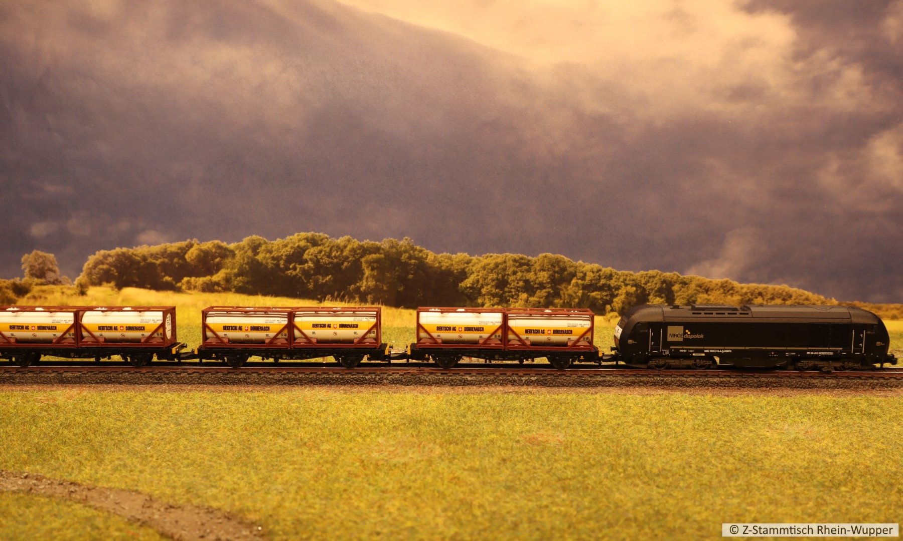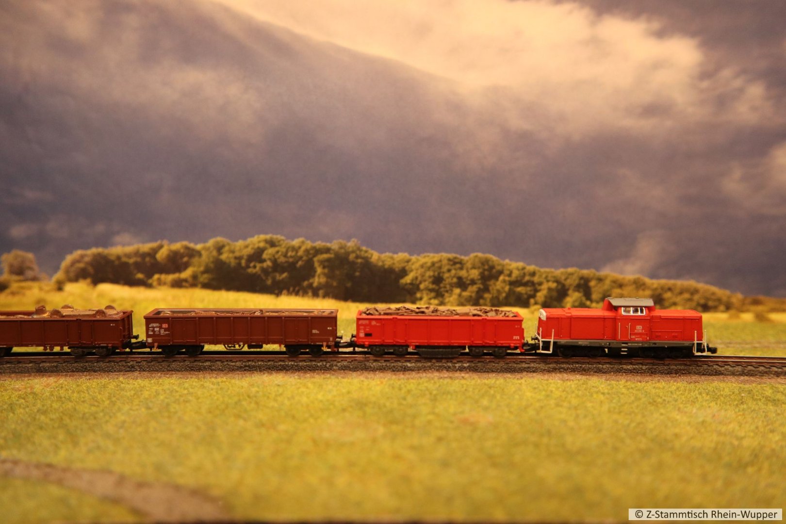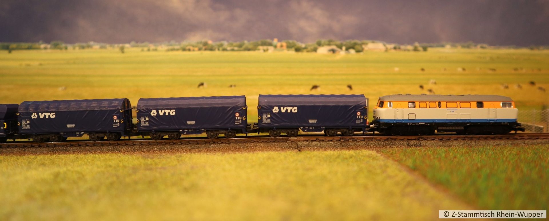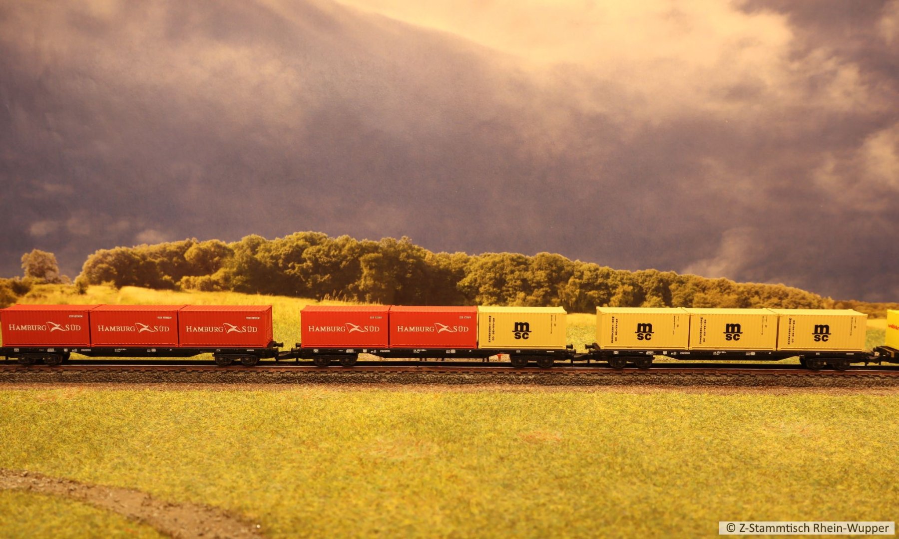 So virtuell kann auch einfach das Thema des Abends ins Bild gebracht werden. Bei mir führen Güterzüge von Dieselloks gezogen