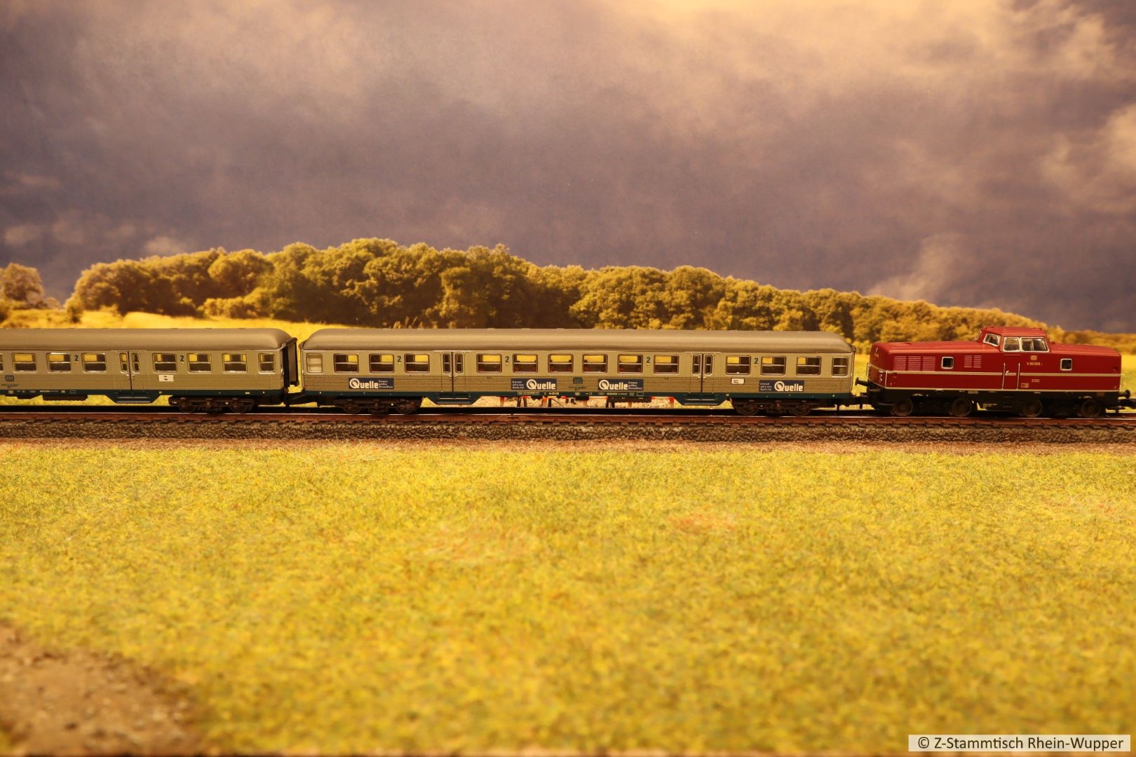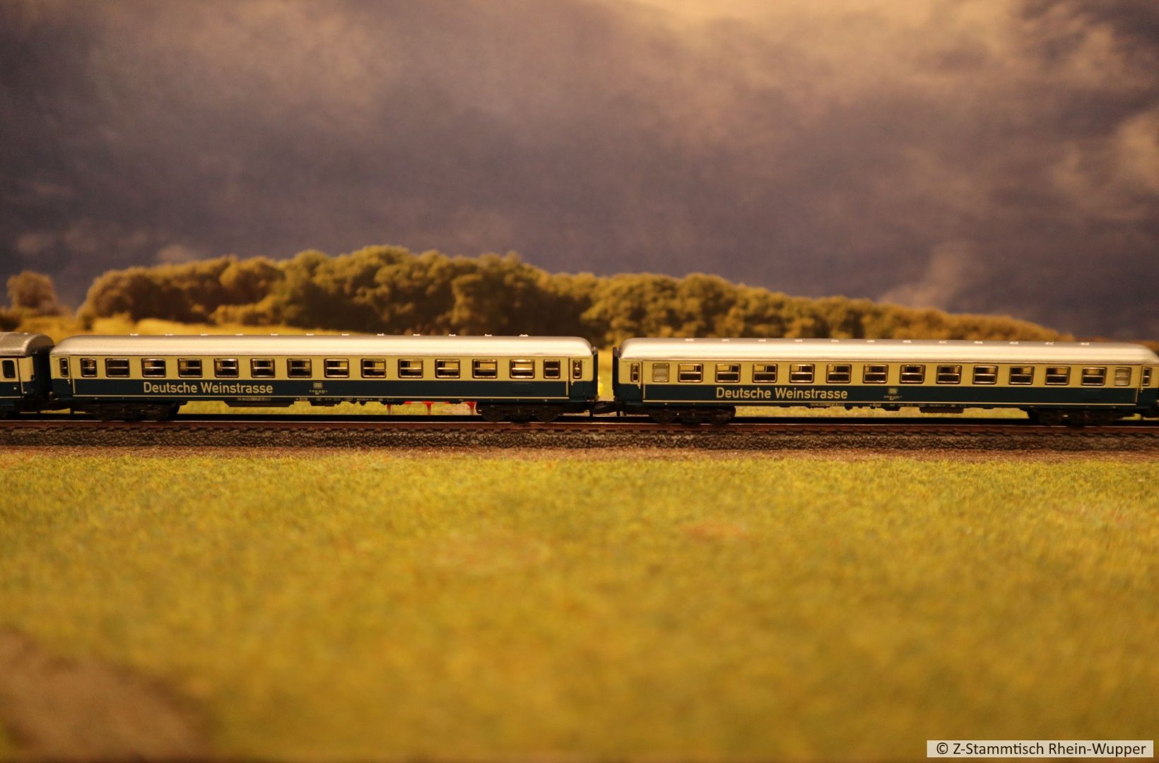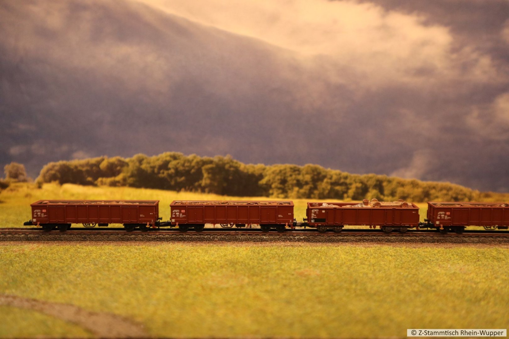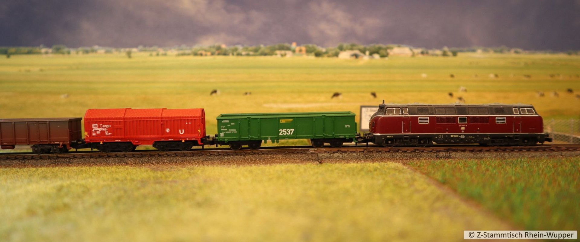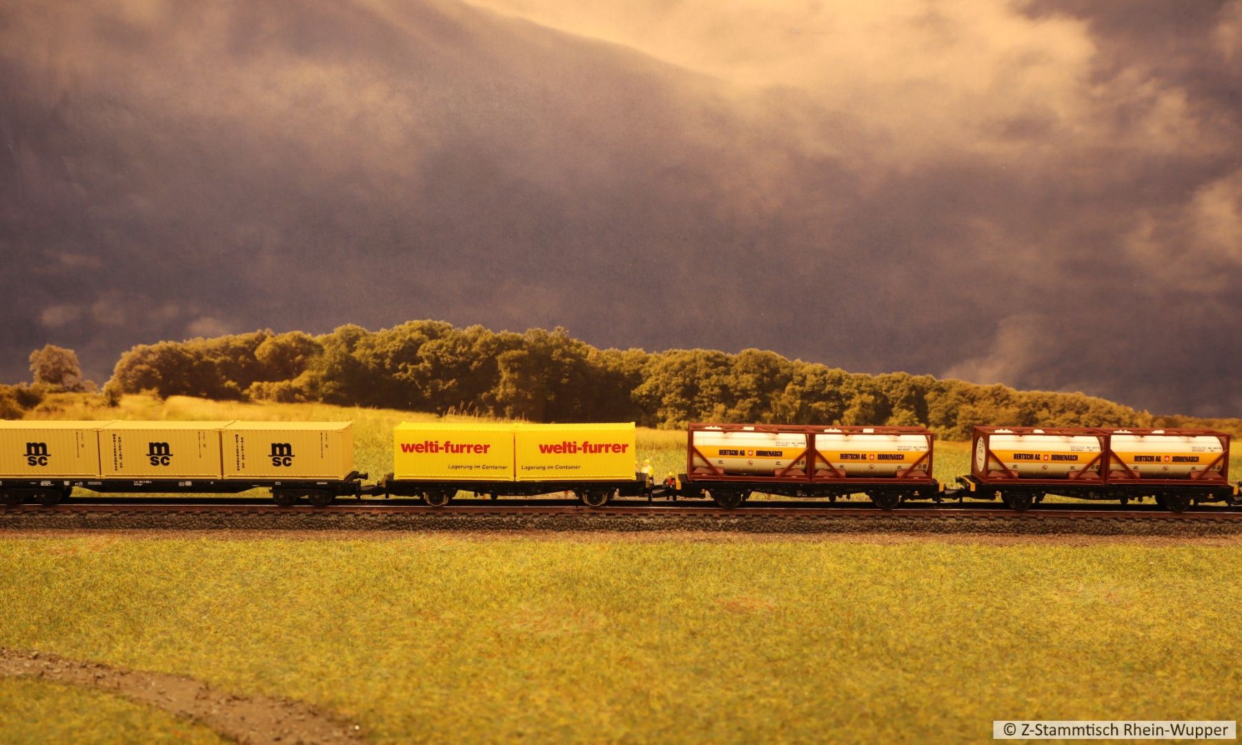 So virtuell kann auch einfach das Thema des Abends ins Bild gebracht werden. Bei mir führen Güterzüge von Dieselloks gezogen