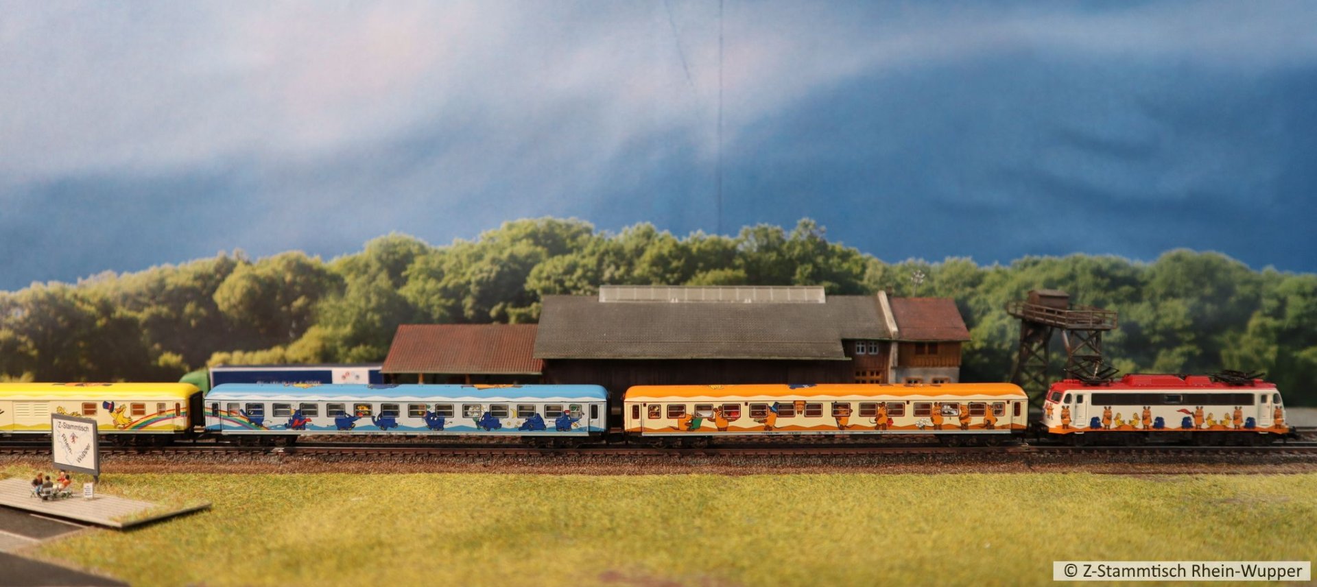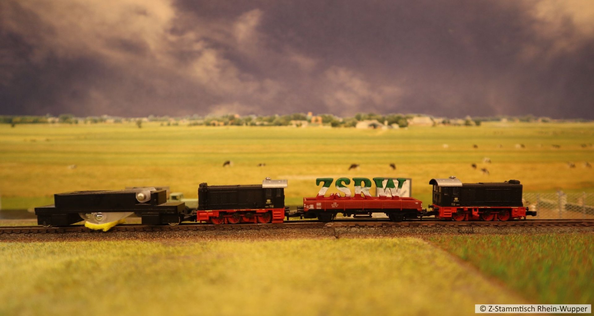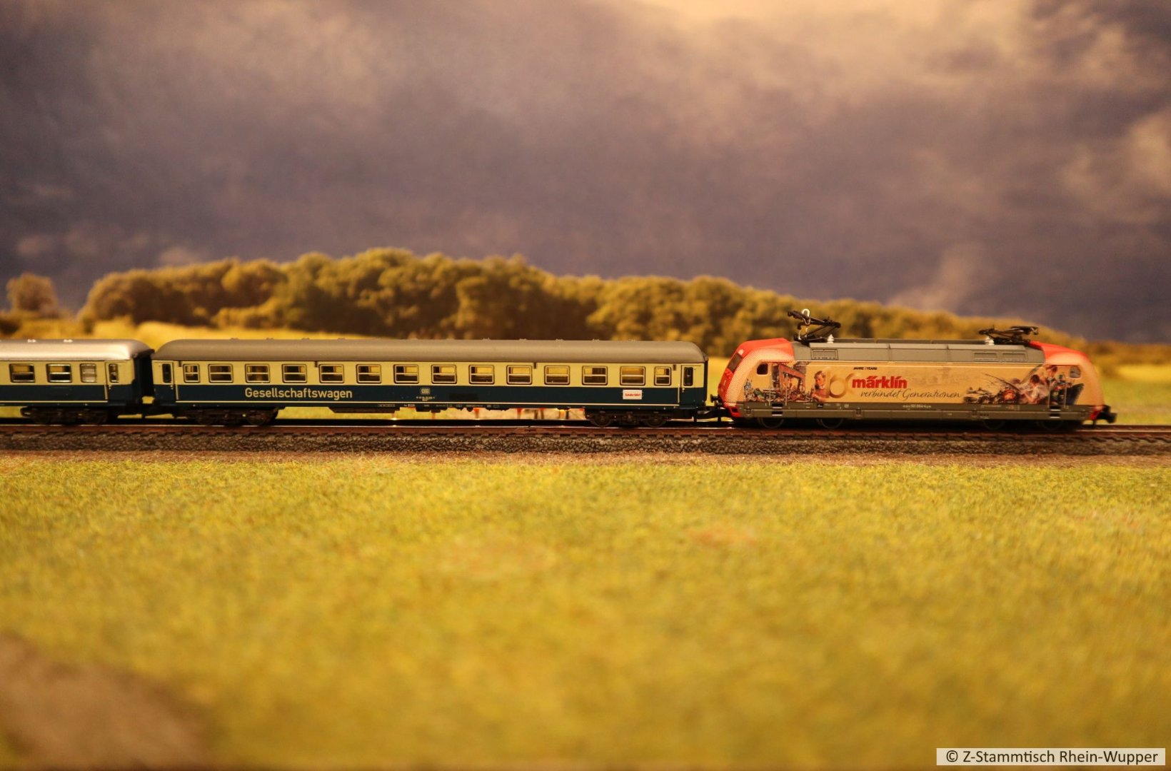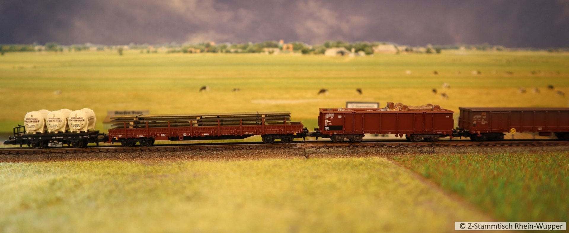 So virtuell kann auch einfach das Thema des Abends ins Bild gebracht werden. Bei mir führen Güterzüge von Dieselloks gezogen