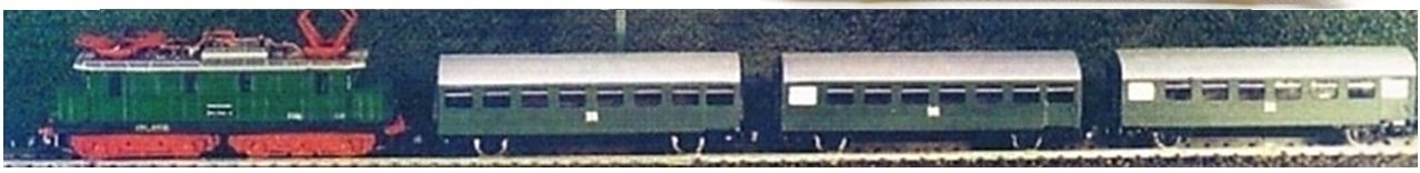 und einer schlechten farbigen Abbildung aus meinem Archiv der FR-Lok mit 3 Wagen
