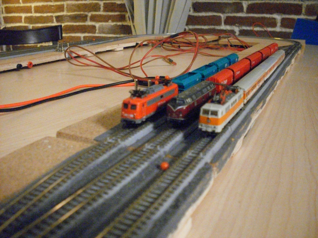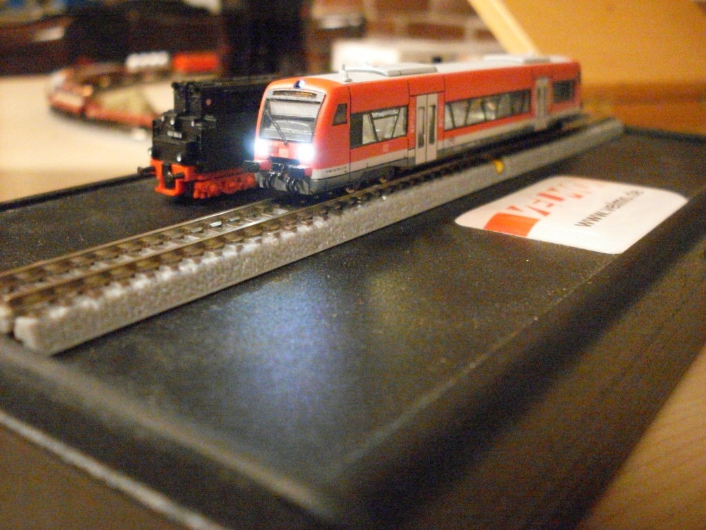 zwei kleine Dioramen in einem Bilderrahmen, bei dem einen pendelt ein Schienenbus die BR 650 von SMZ und noch ein bisschen was, was an dem Abend sonst noch so über die Brettchen rollte. viele Grüße