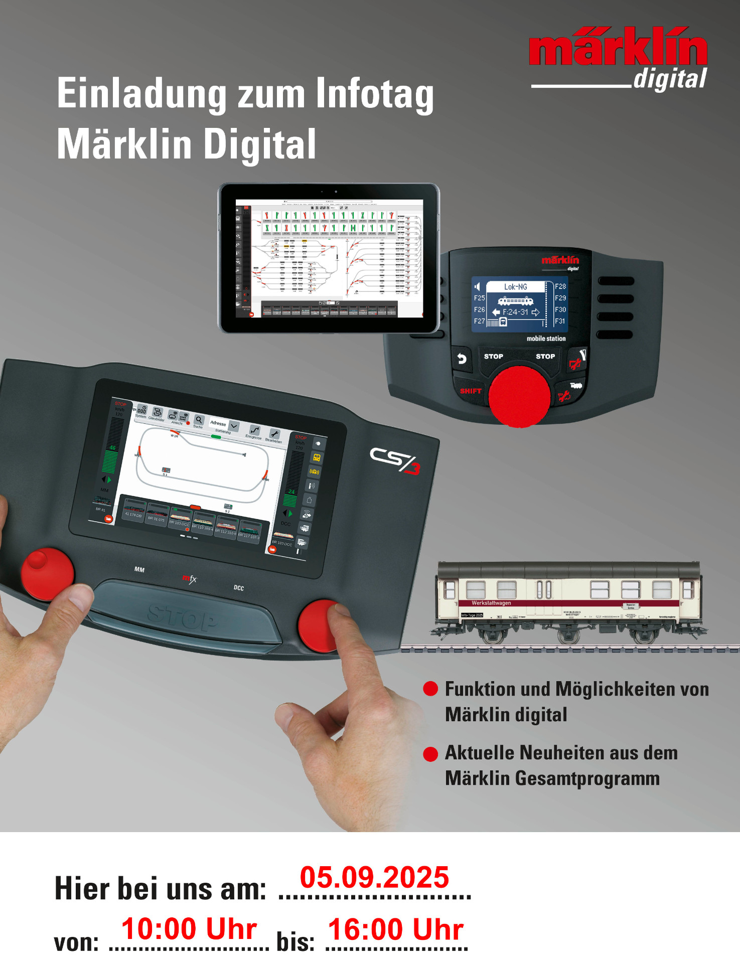 Märklin Digital Infotag am 05.09.2025 bei uns in Westheim. Viessmann kommt auch. Natürlich ist der Ausstellungsraum geöffnet.