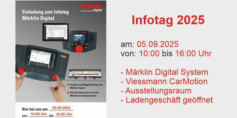 Ich möchte hier noch einmal an unseren Infotag erinnern und würde mich freuen, viele Besucher begrüßen zu dürfen. Neben Daniel Kahler von Märklin ist auch Thorsten Rüppel von Viessmann mit dem CarMotion System bei uns.