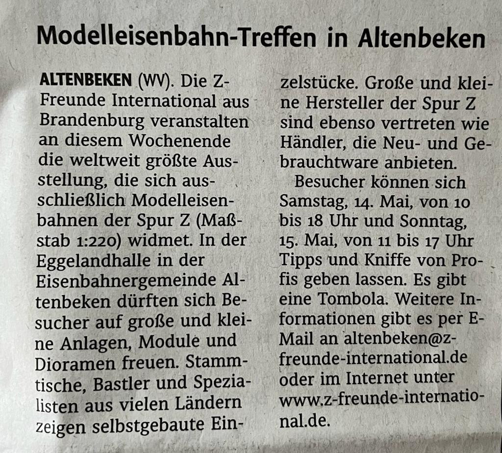 Re: 8. Int. Spur-Z-Weekend Altenbeken 14./15.5.2022