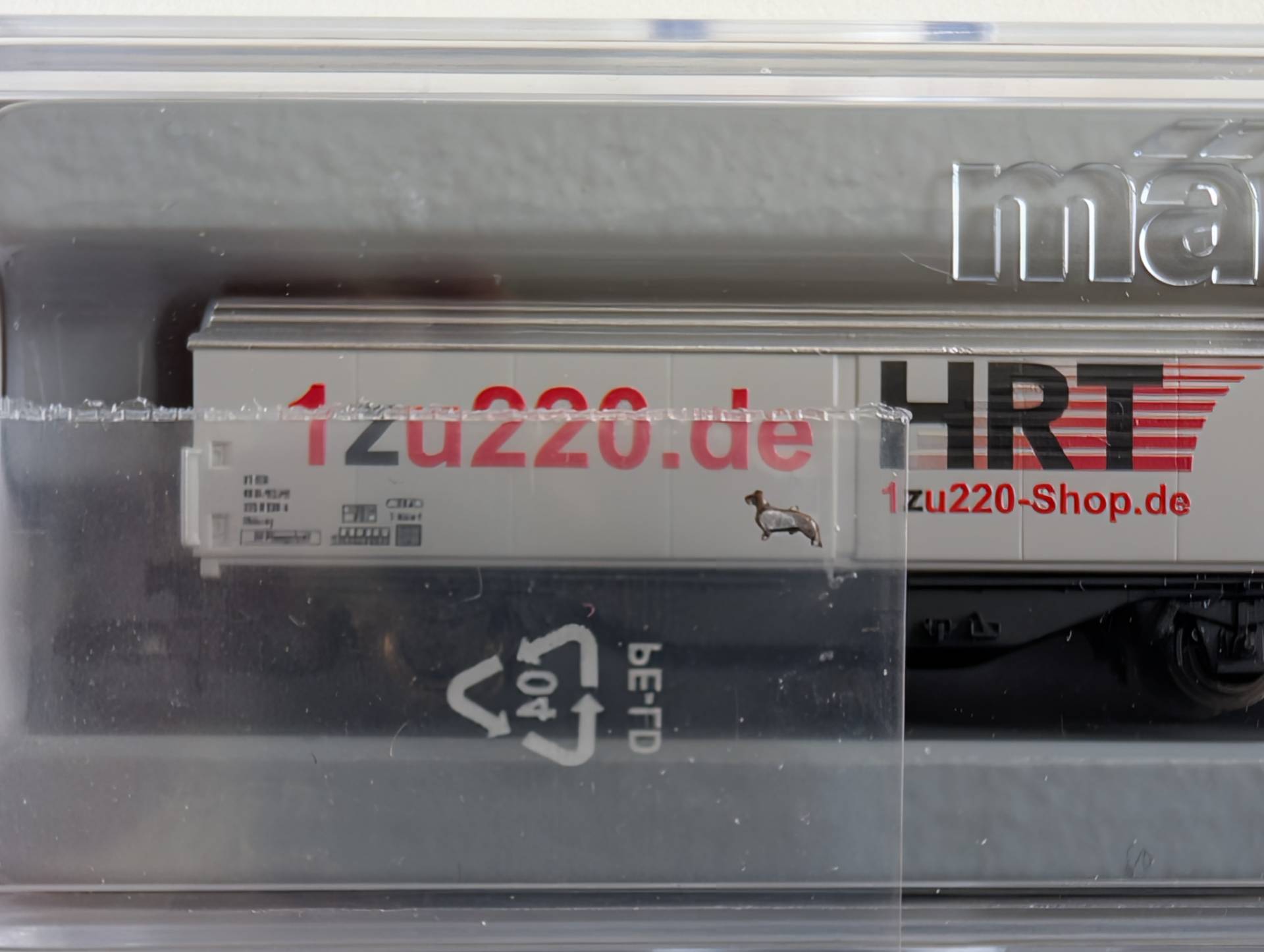 Dackel in Spur Z, zum Vergleich auf einen Z Wagen gelegt: