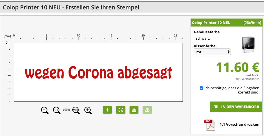 Wenn ich die Idee nächste Woche noch gut finde, bestelle ich mir einen Stempel:jerkel hat geschrieben: Fr 13. Mär 2020, 14:05 Der Wagen ist fertig bedruckt von Märklin geliefert worden. Wenn es überhaupt möglich wäre, so wäre es ein riesiger Aufwand die Wagen "nachzubedrucken", wenn Märklin das überhaupt anbieten würde. Ich halte das für nicht umsetzbar. Es erzeugt nur zusätzliche Kosten, und zwar keine geringen. Im nächsten Schritt bestellen dann Kunden ab, die eine Serie haben aber diese Änderung nicht wollen.