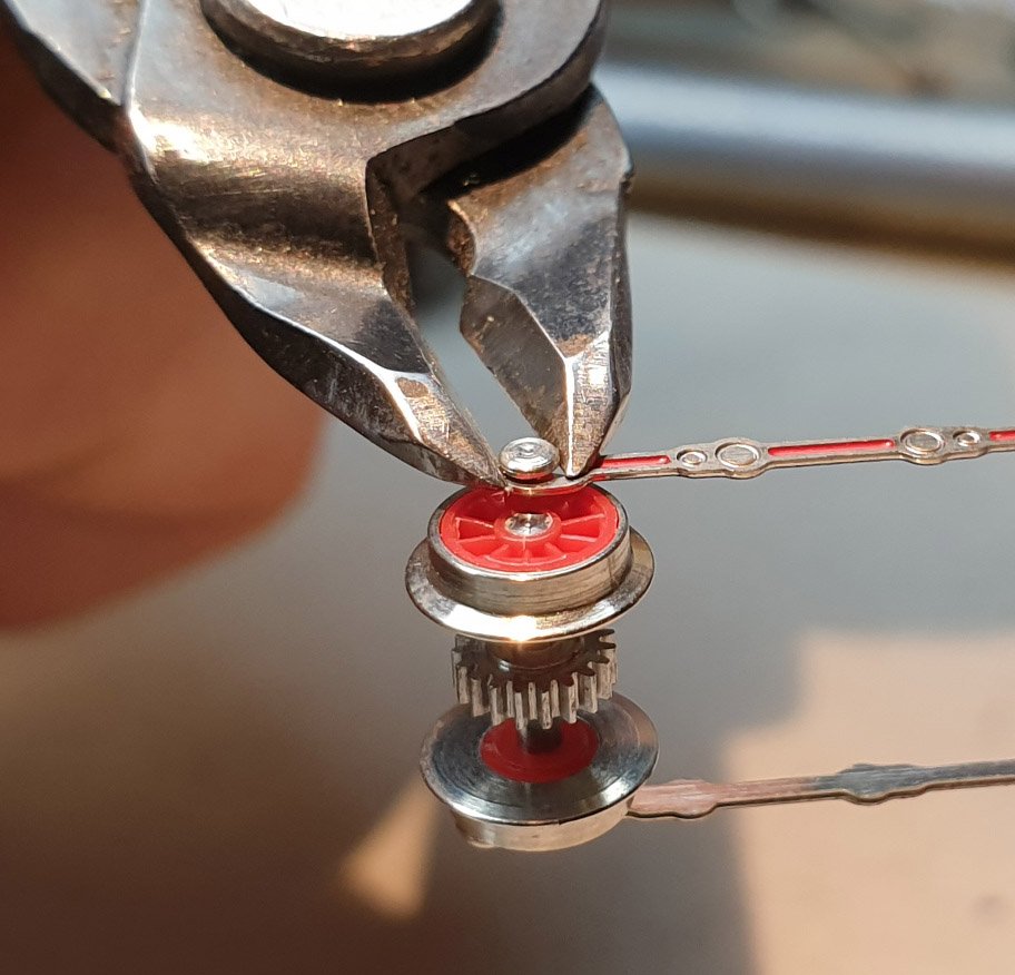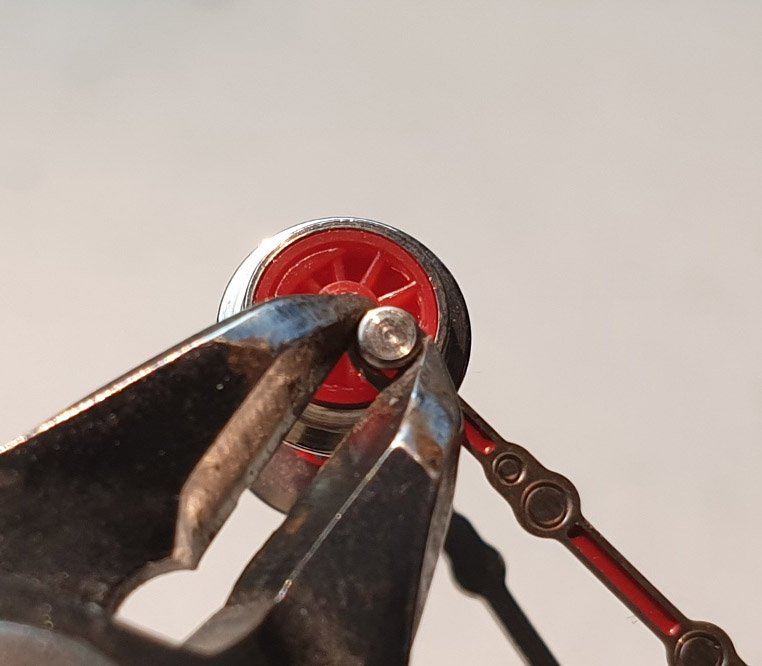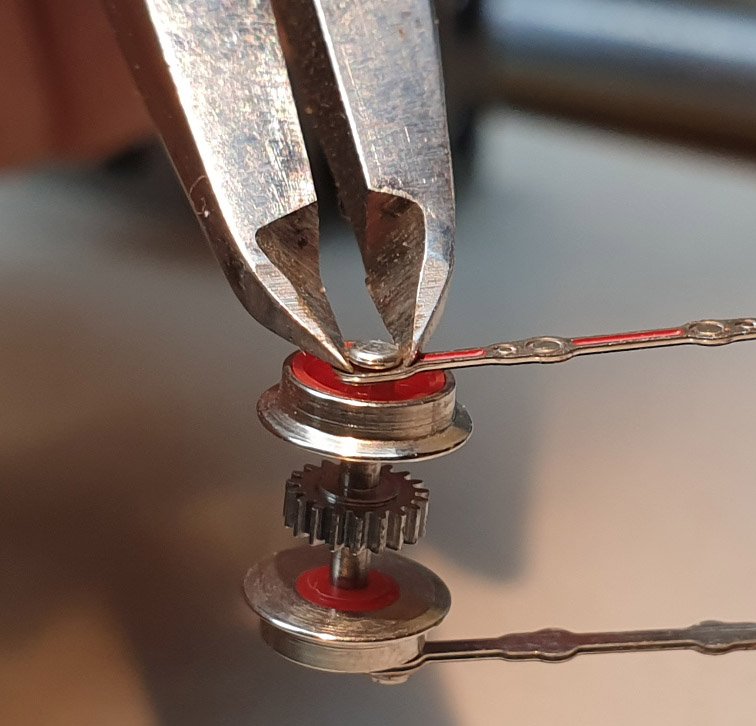 - Die Kuppelstangen mit einer Schere (Nagelschere) heraustrennen. Möglichst nicht mit einem Messer.