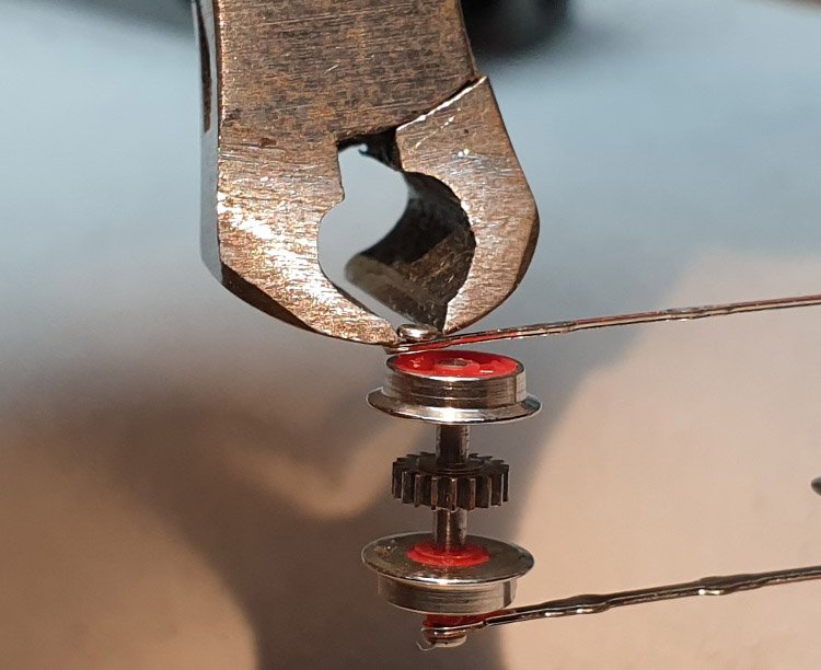 - Niet mit möglichst langer Flachzange senkrecht einpressen.