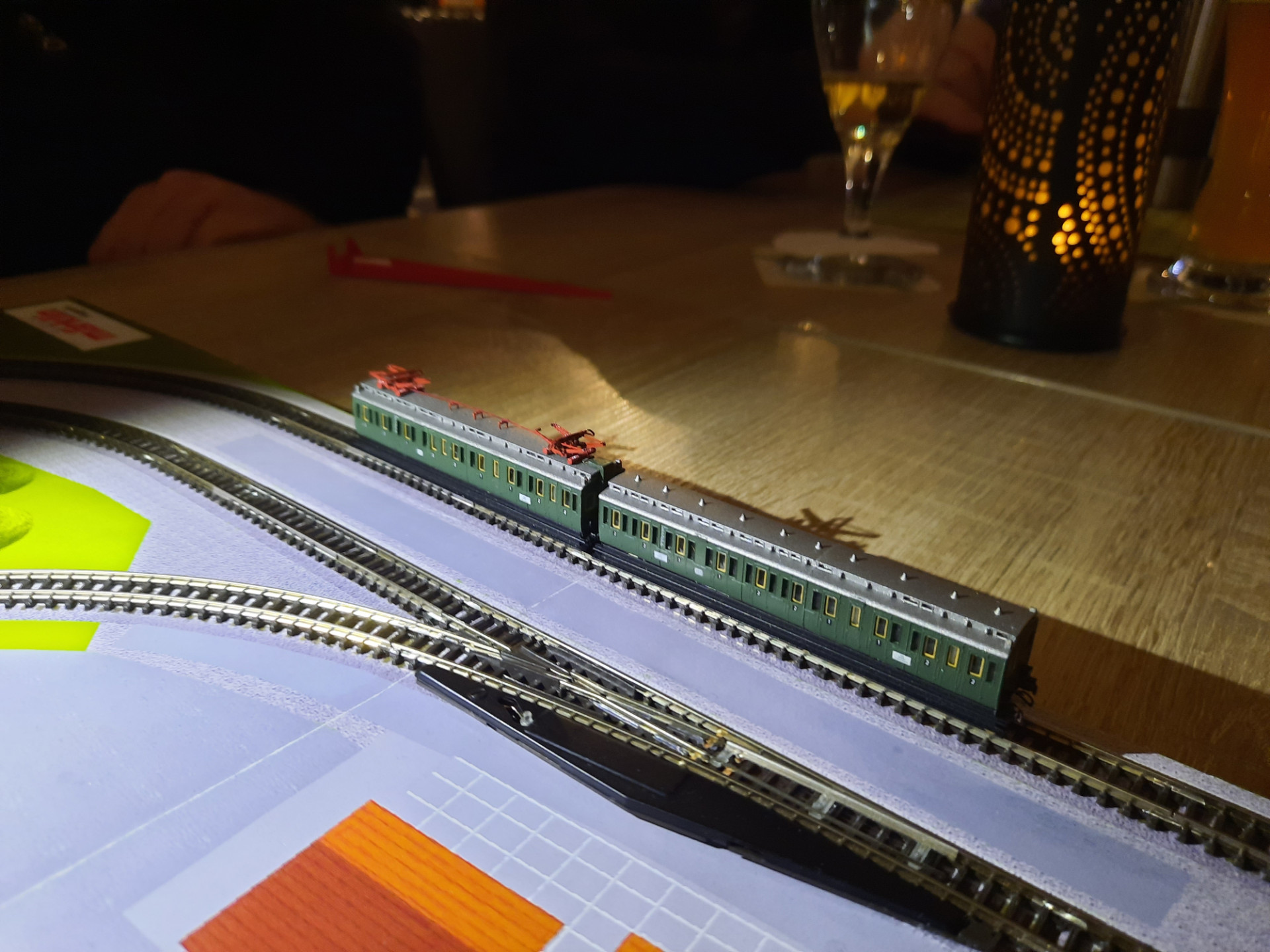 Trotz zweier Absagen hatten wir mit immerhin sieben Teilnehmern wieder einen interessanten Abend, zumal der kleine schon beim letzten Mal vorgesehen Rundkurs funktionierte und verschiedenen Shorty-Triebzügen Auslauf gab.