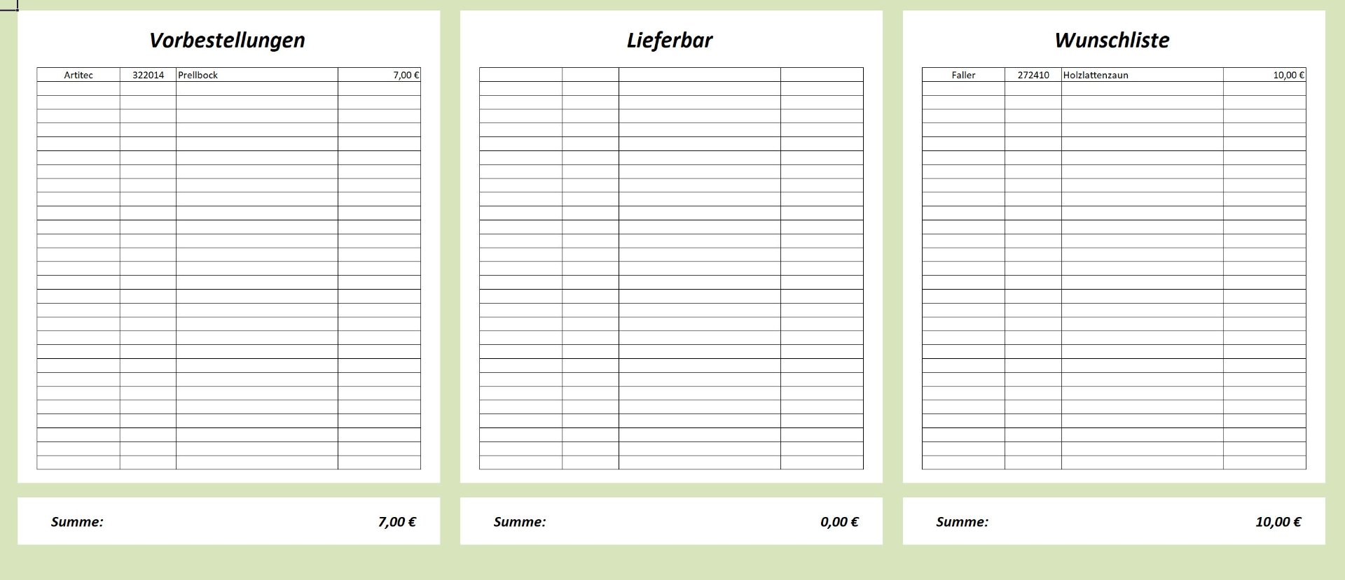 das Problem mit den ausstehenden und abgeschlossenen Bestellungen habe ich mit einer Excel-Tabelle gelöst: Rechts sammel ich erstmal das, was überhaupt von Interesse ist.
