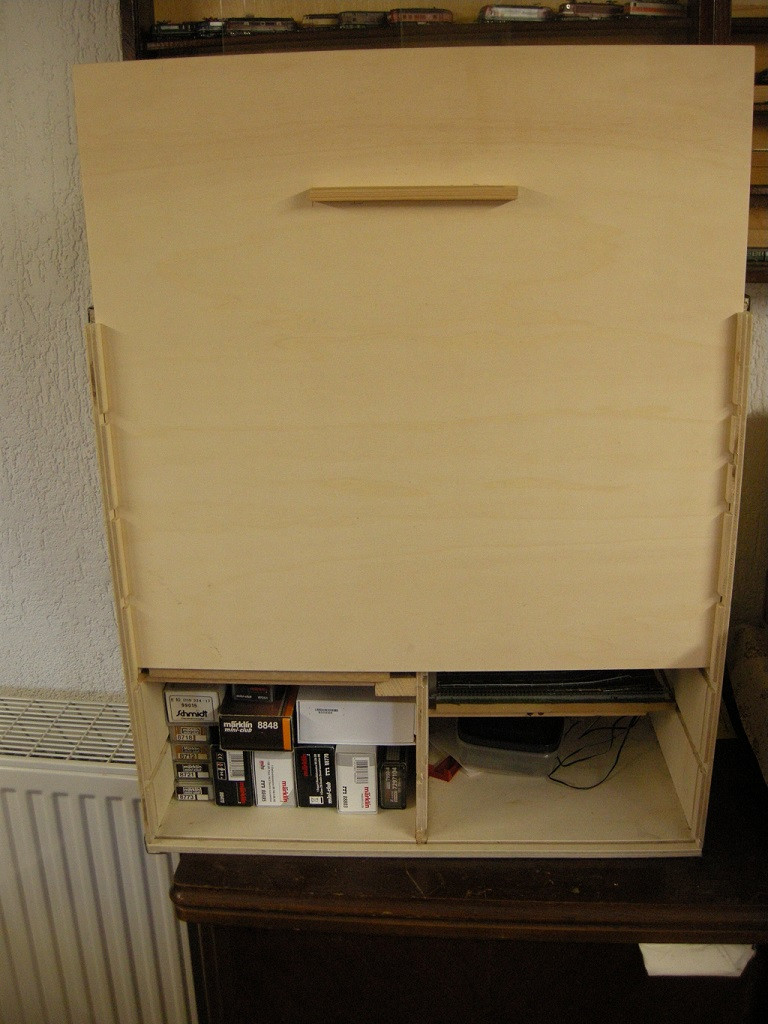 hier nochmal ein paar bessere bilder von meinem Transportkoffer. Die Maße sind etwa 500mm X 510mm X 245mm, das Material ist Pappelsperrholz welches ich mir im Baumarkt auf Maß habe zuschneiden lassen. Die Rückwand ist Fest eingefräßt, was der Kiste richtig Stabilität verleiht und die Vorderseite kann eingeschoben werden, hierfür habe ich Nuten in die Bretter gefräßt.