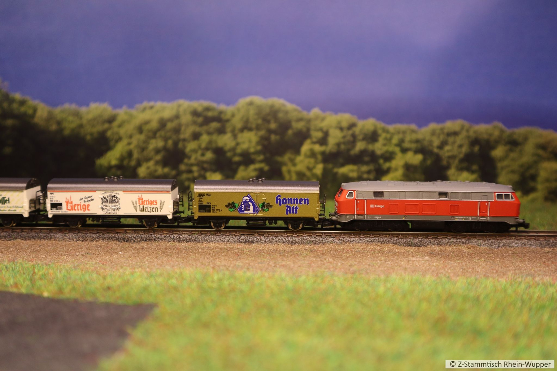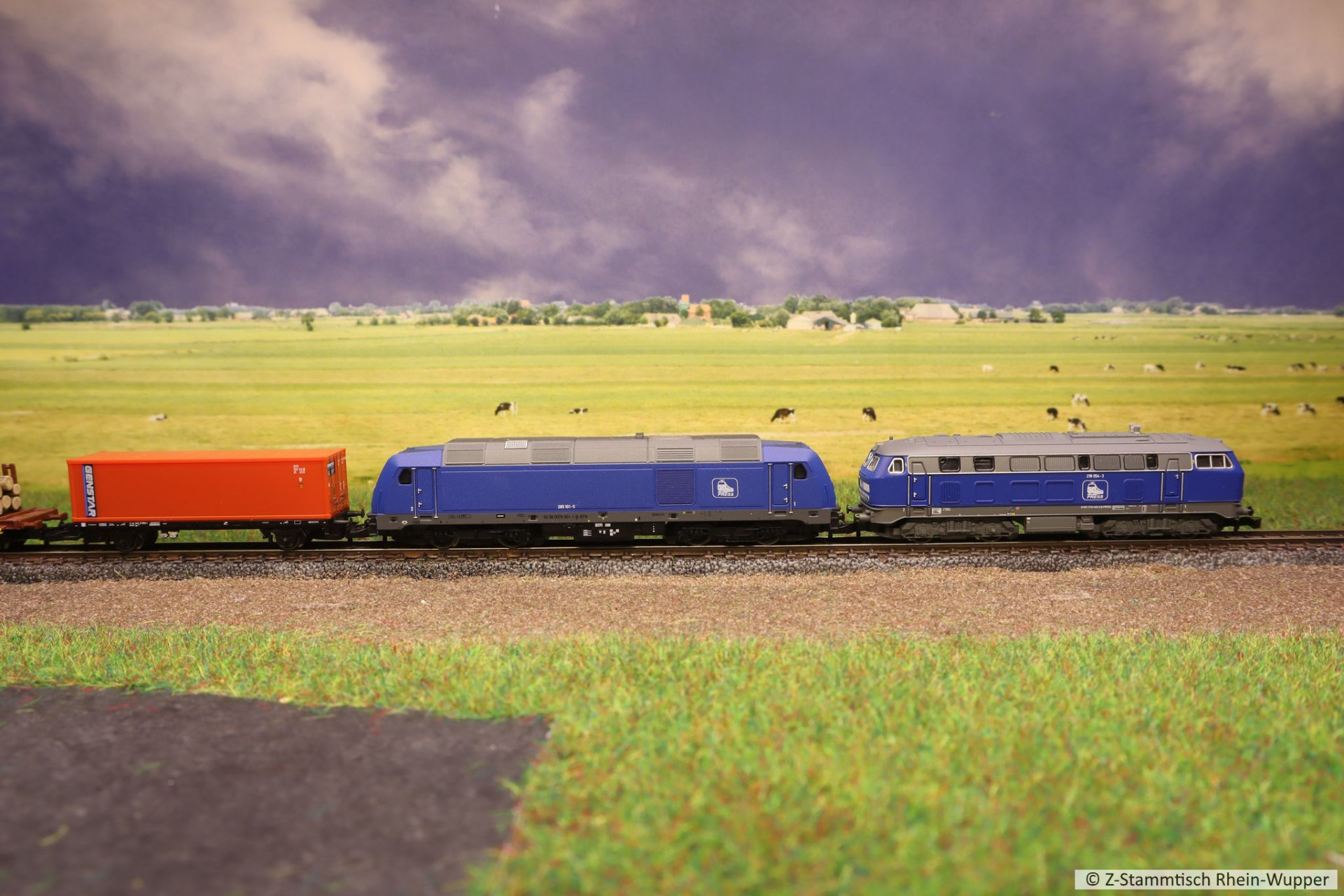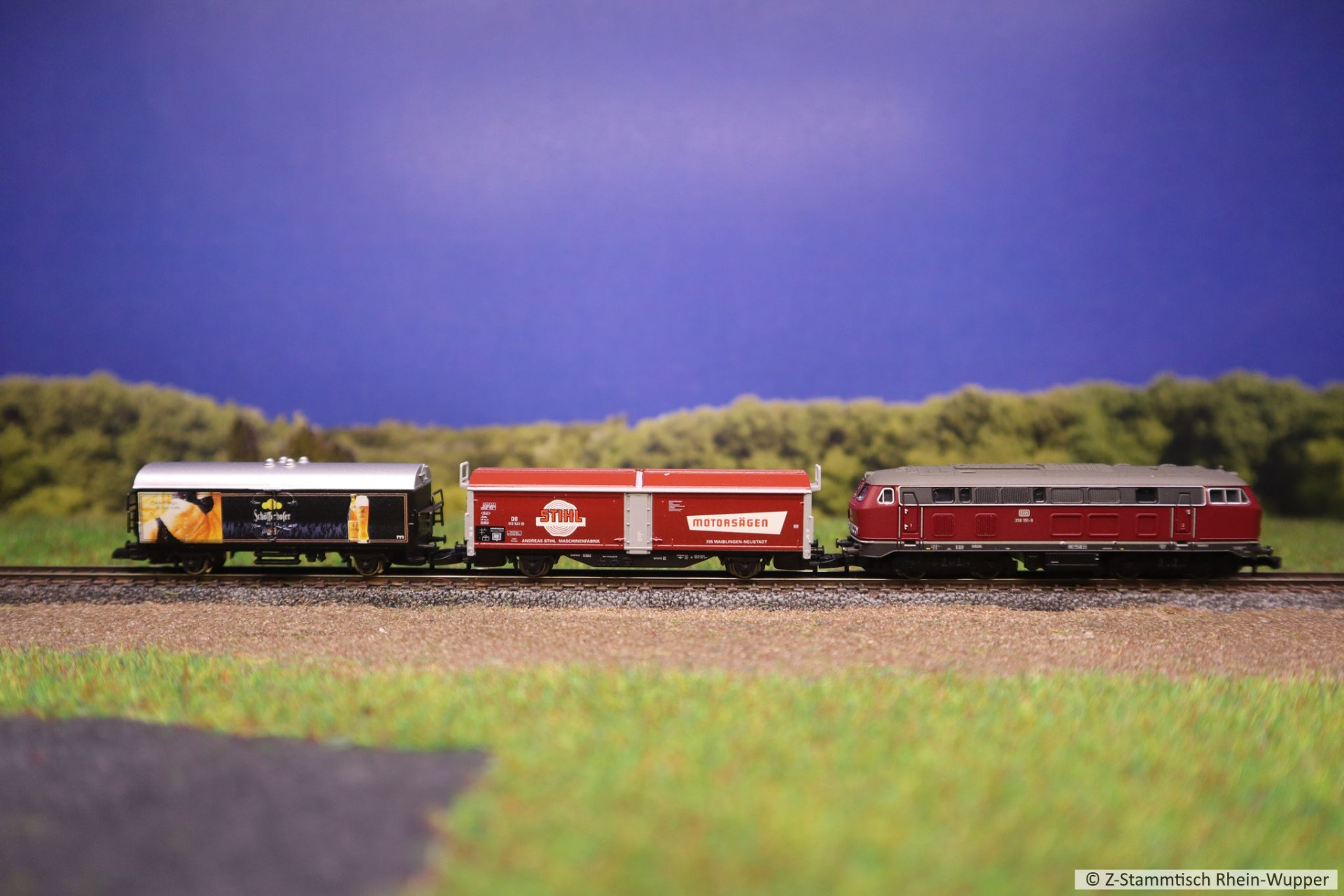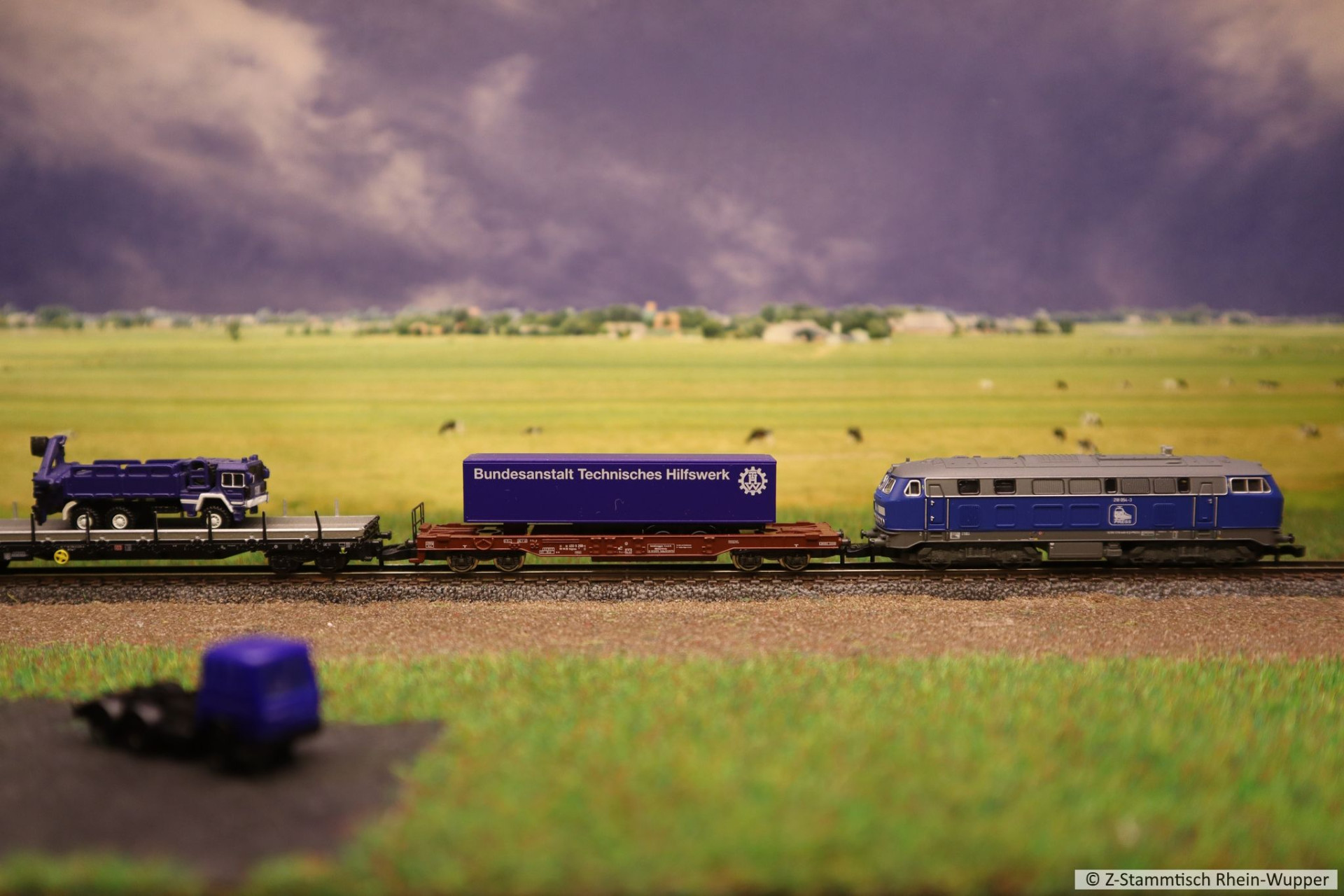 Später hat die BR 218 auch noch den neuen Werkstattwagen 631 von Freudenreich mit einigen weiteren Wagons über die Gleise befördert