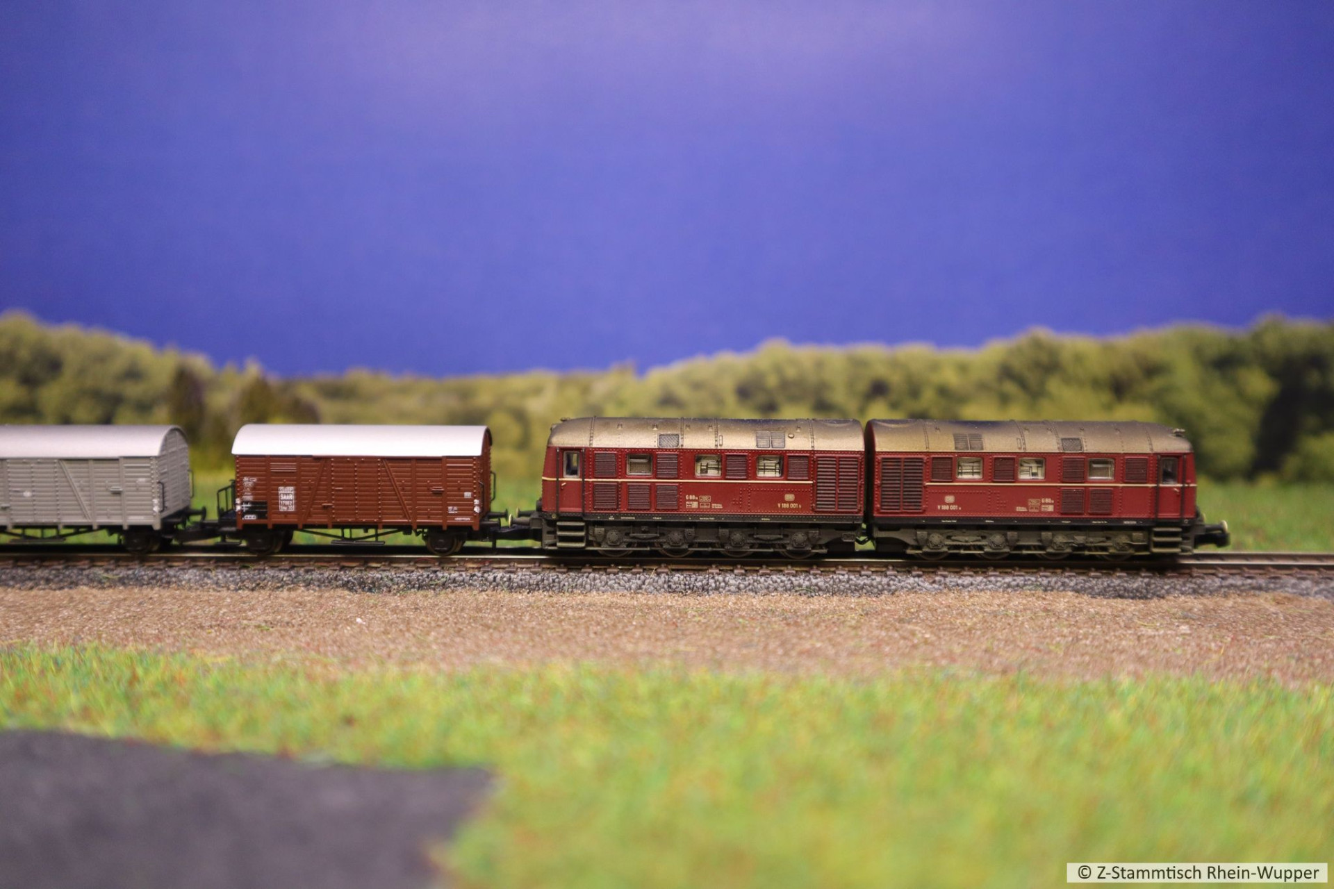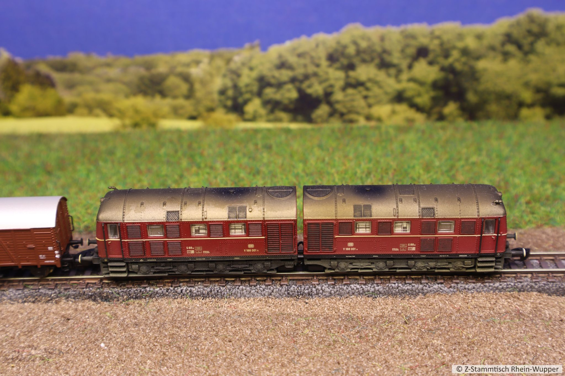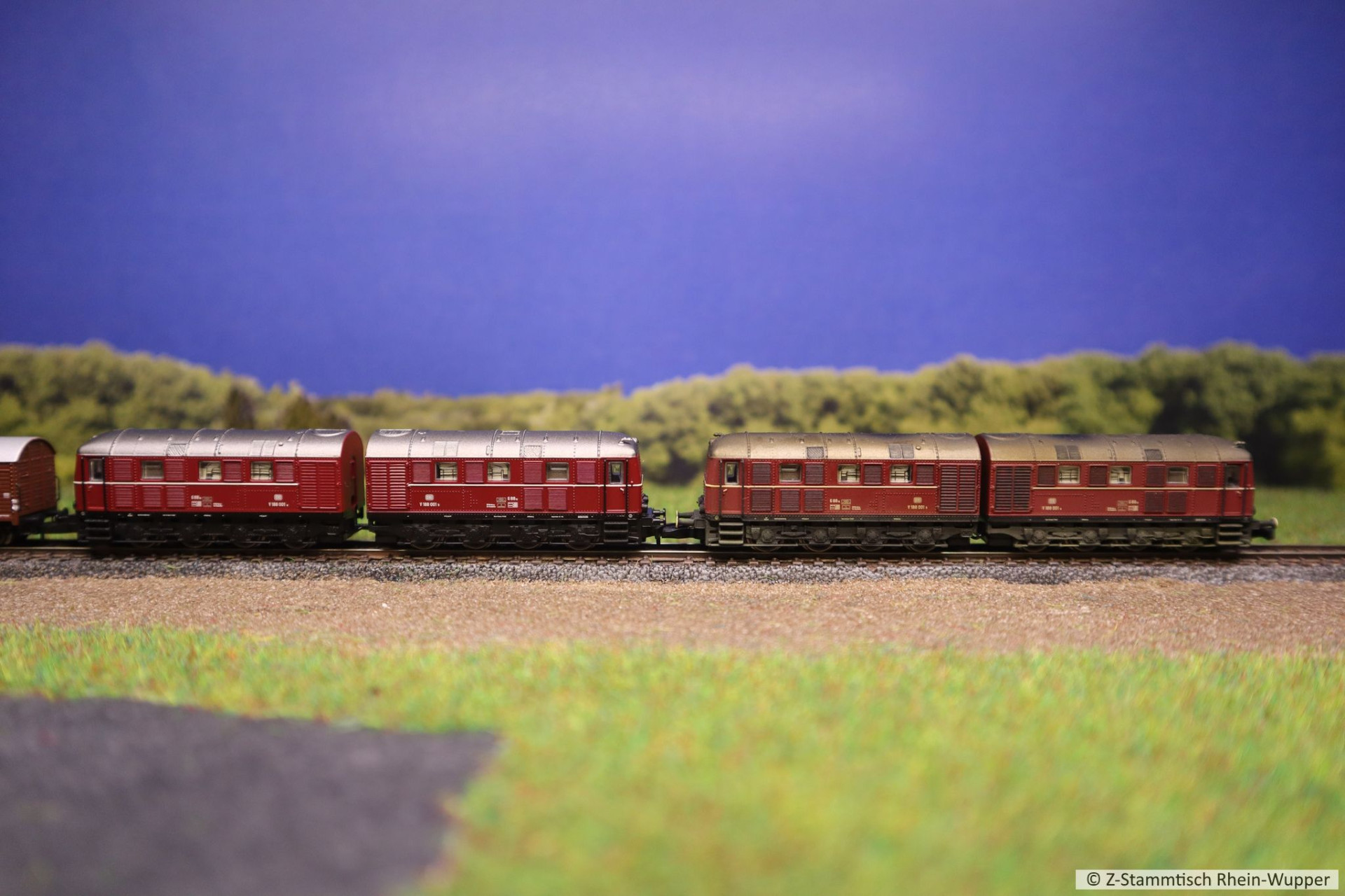 Später hat die BR 218 auch noch den neuen Werkstattwagen 631 von Freudenreich mit einigen weiteren Wagons über die Gleise befördert
