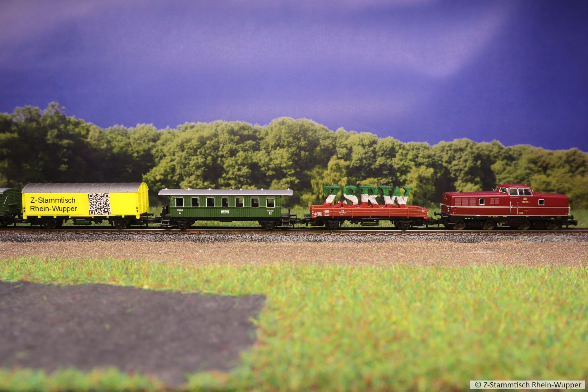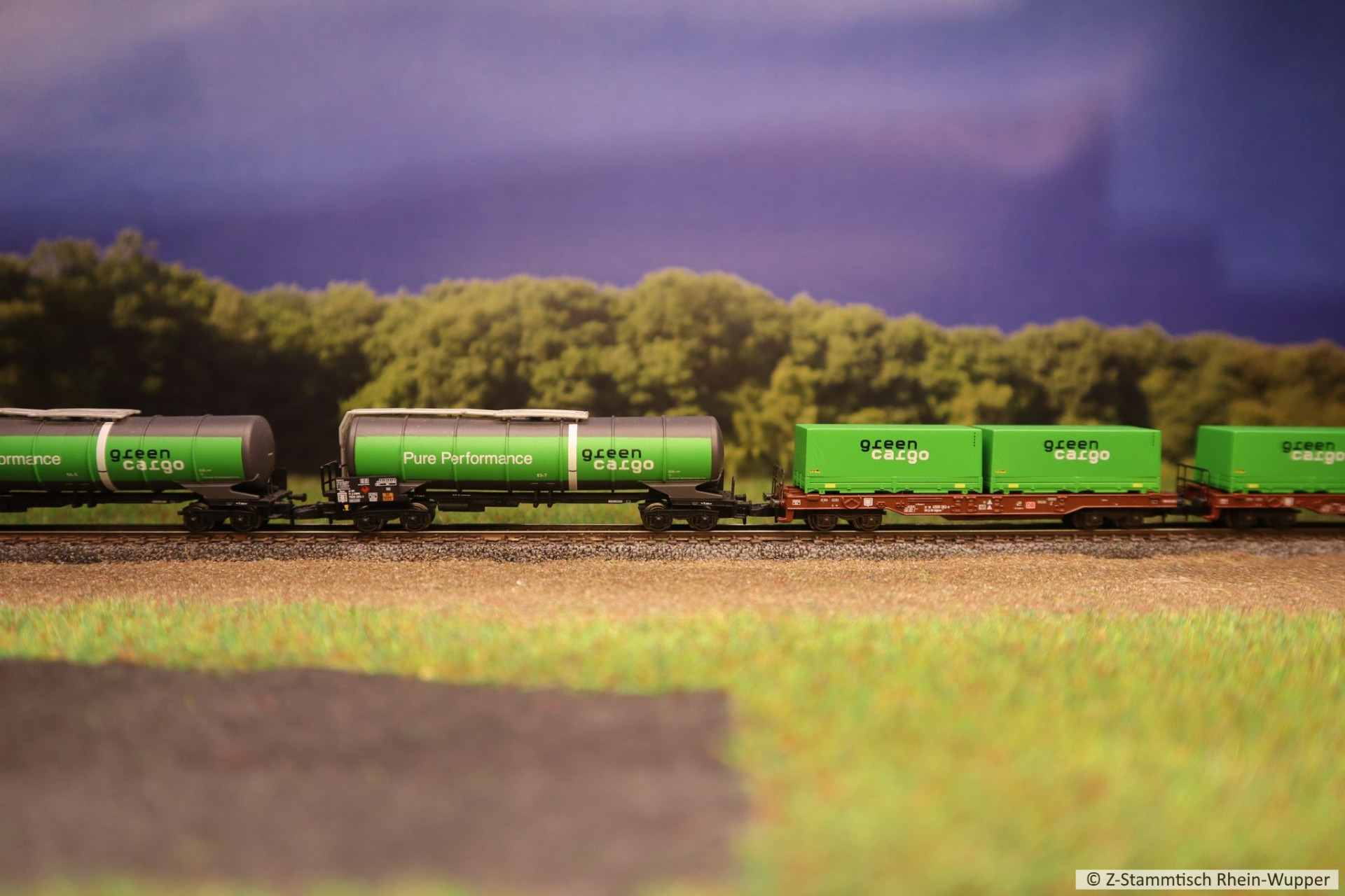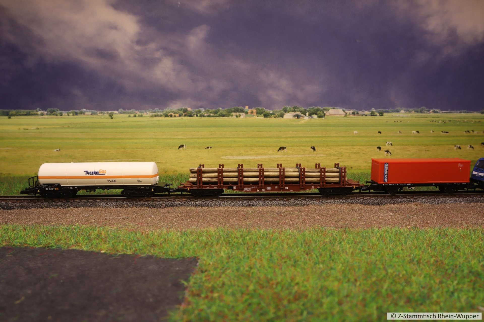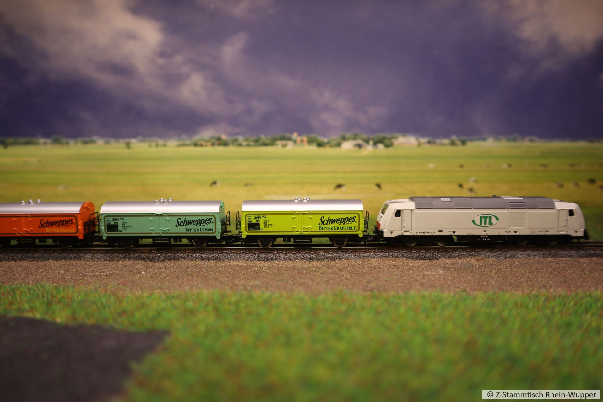 Später hat die BR 218 auch noch den neuen Werkstattwagen 631 von Freudenreich mit einigen weiteren Wagons über die Gleise befördert