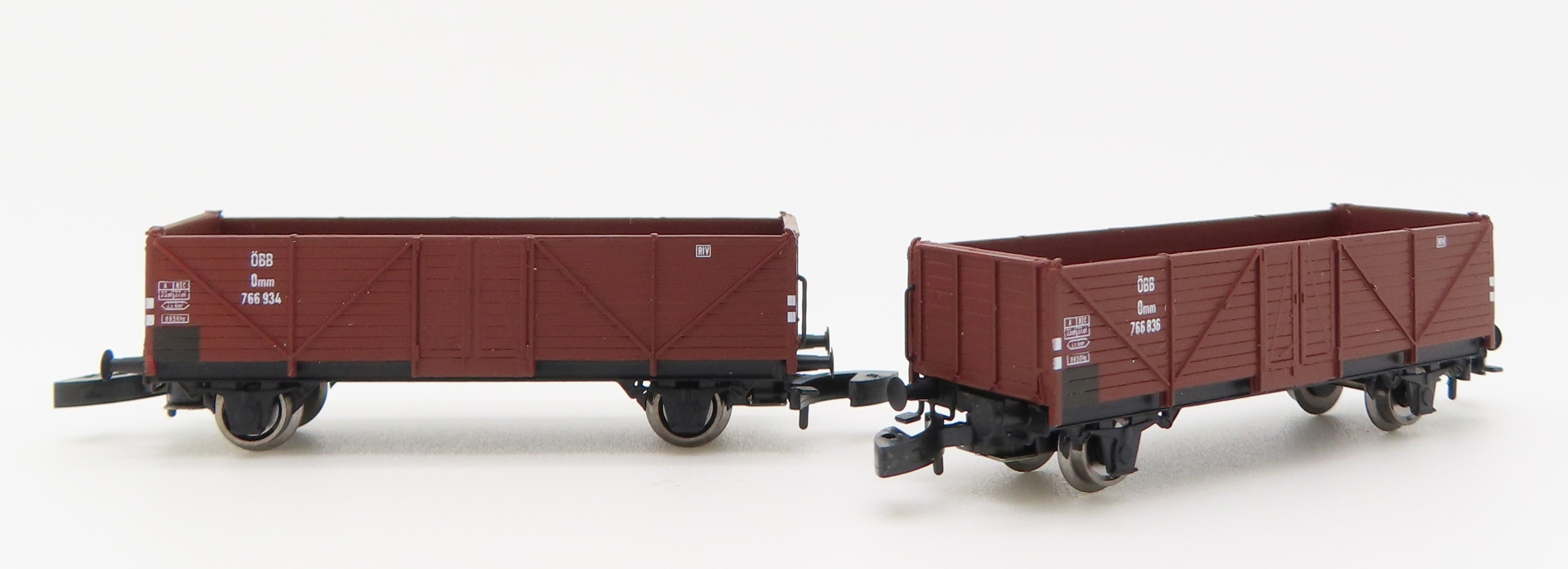 Es handelt sich um ein 2er-Set des offenen Güterwagens Omm (ex Klagenfurt) der ÖBB - Art. Nr. 43.336.02.