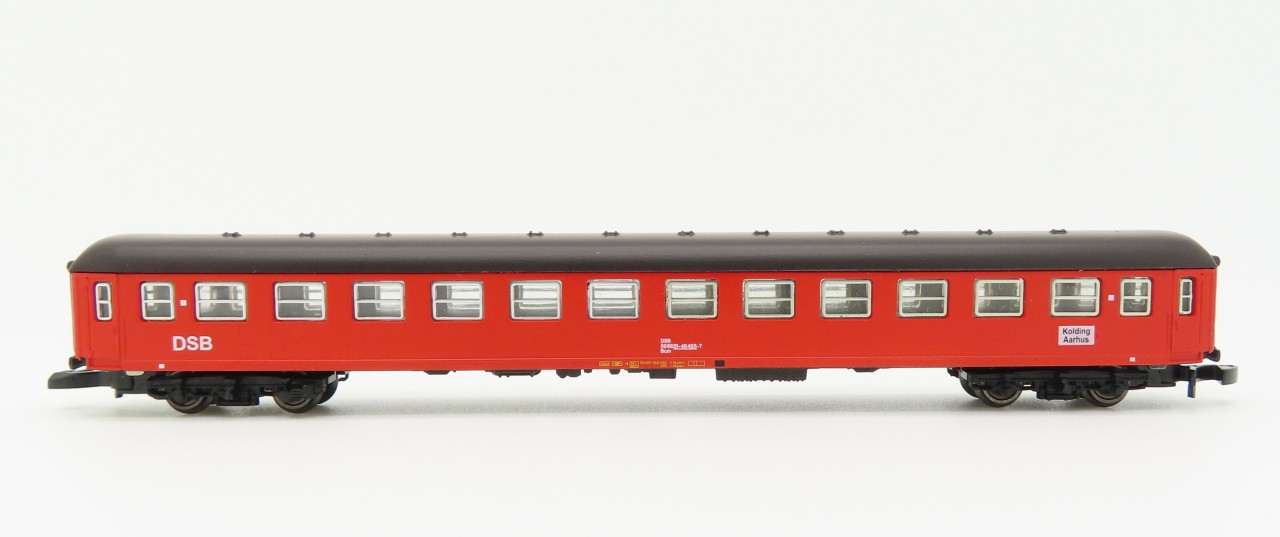 Er hat sich die Mühe gemacht, und einige Märklin #8711 Basismodelle zu DSB-Reisezugwagen "Bcm" umgestaltet.