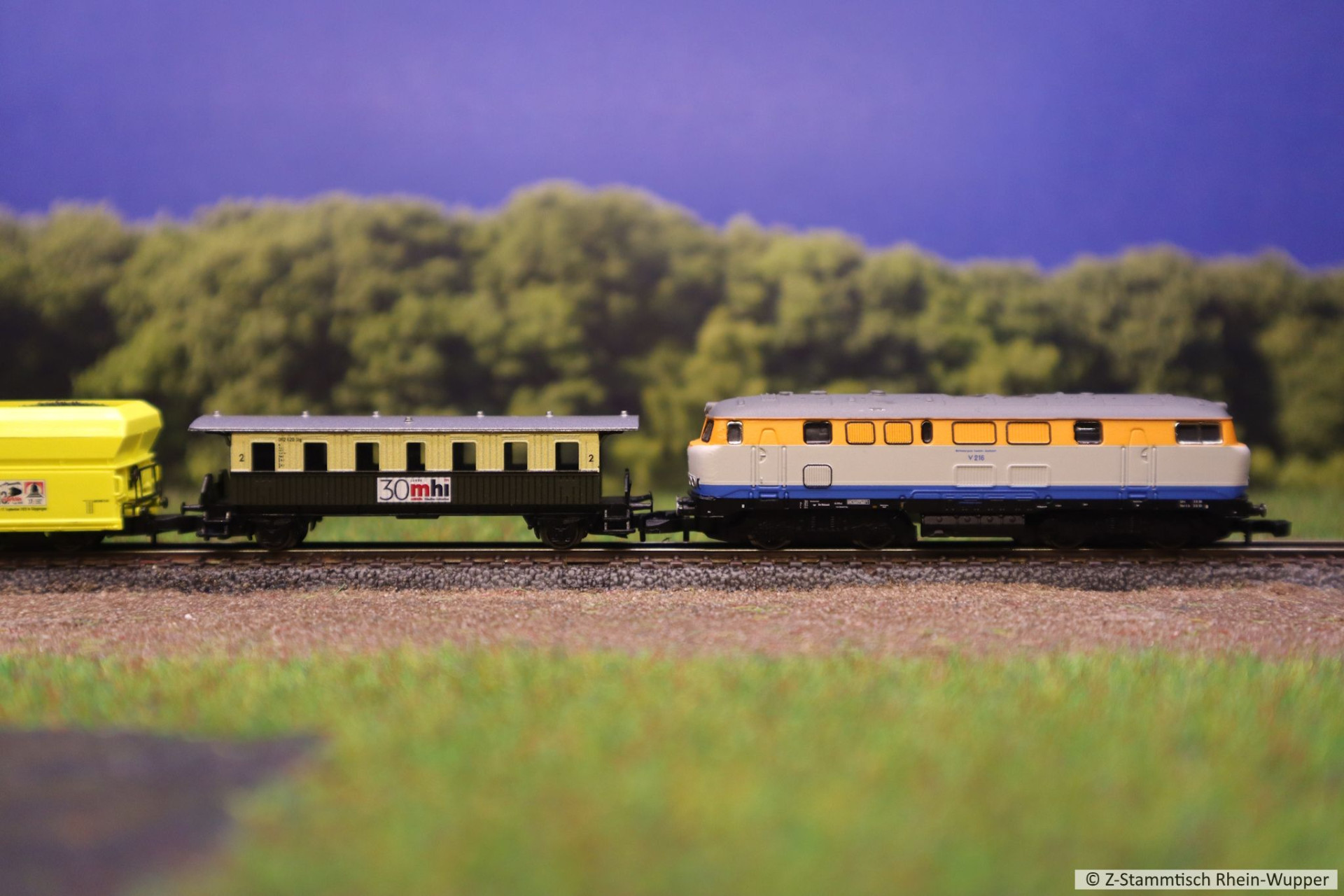 Als erstes ging unser Stammtischzug auf die Runde. Als Lok ein Versuch einer eigenen Lackierung von mir von vor ein paar Jahren.