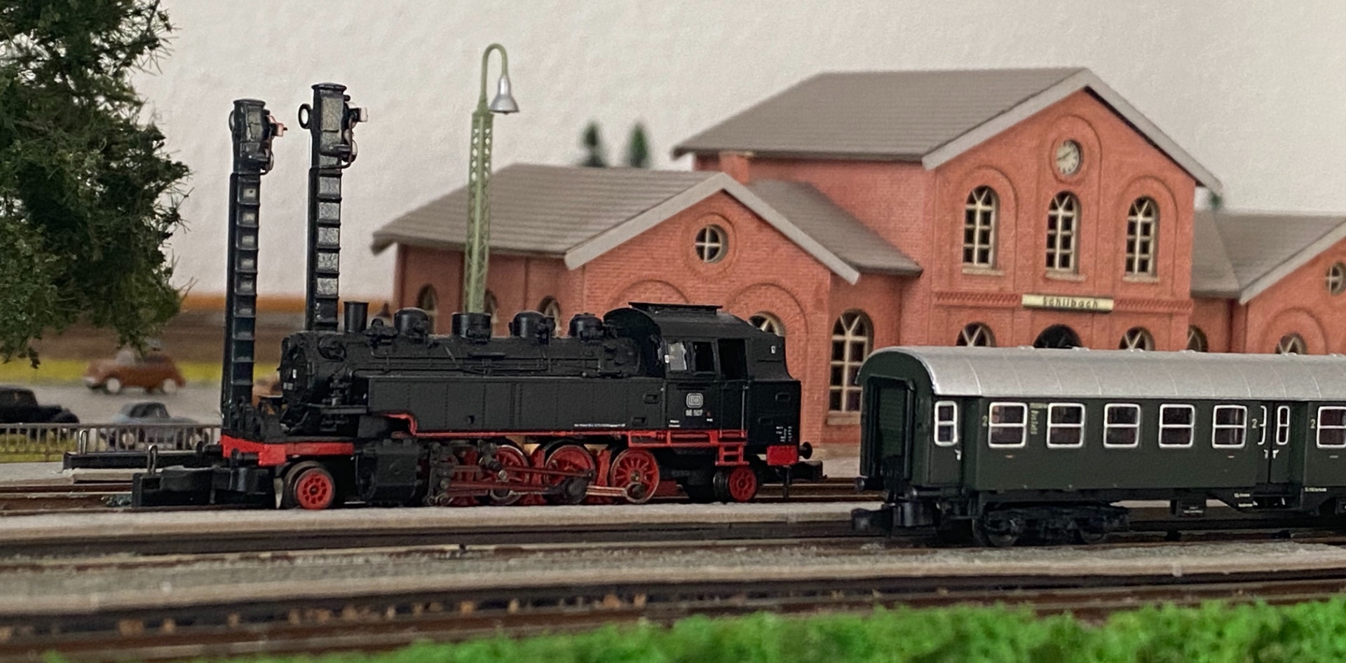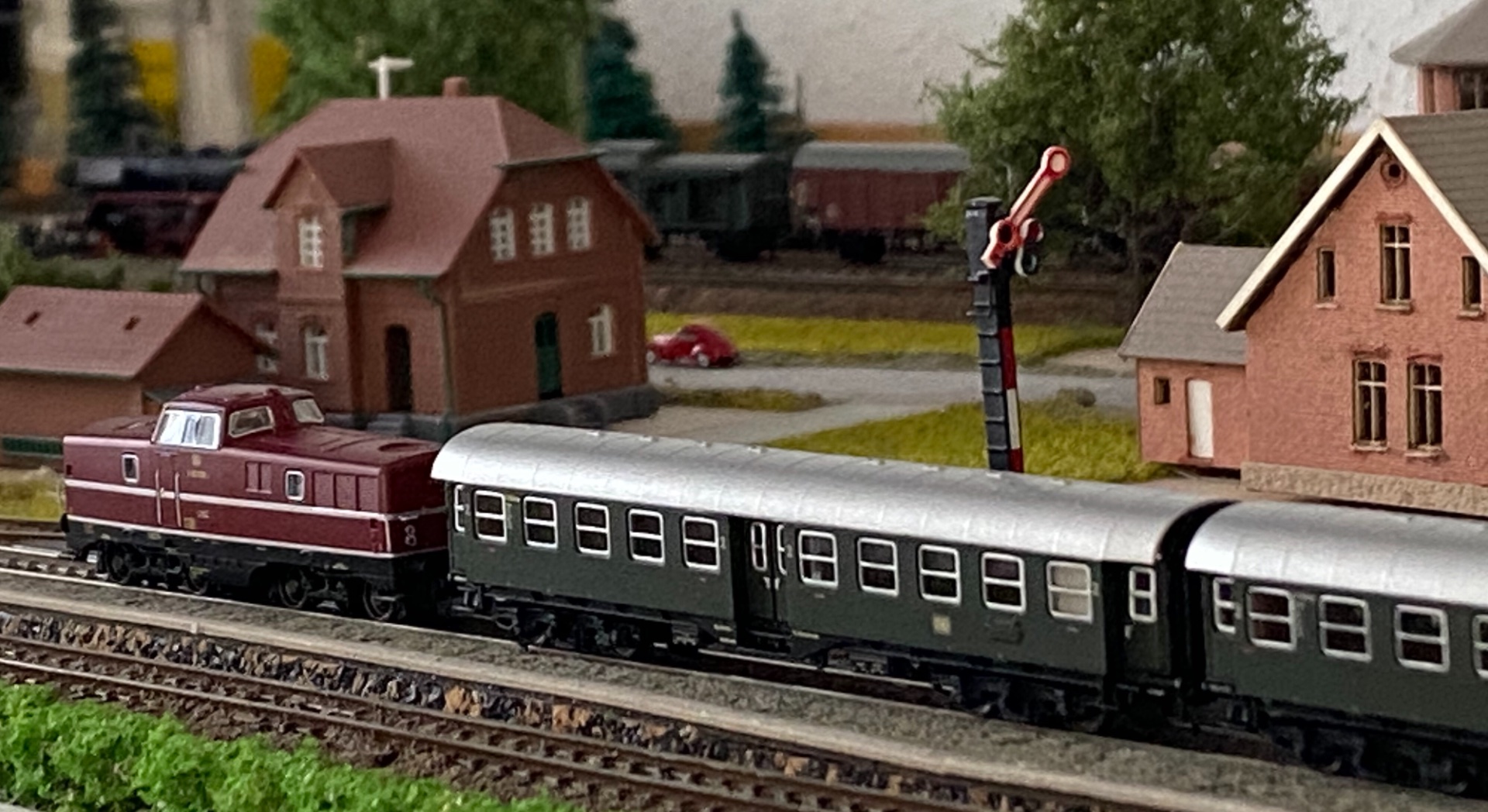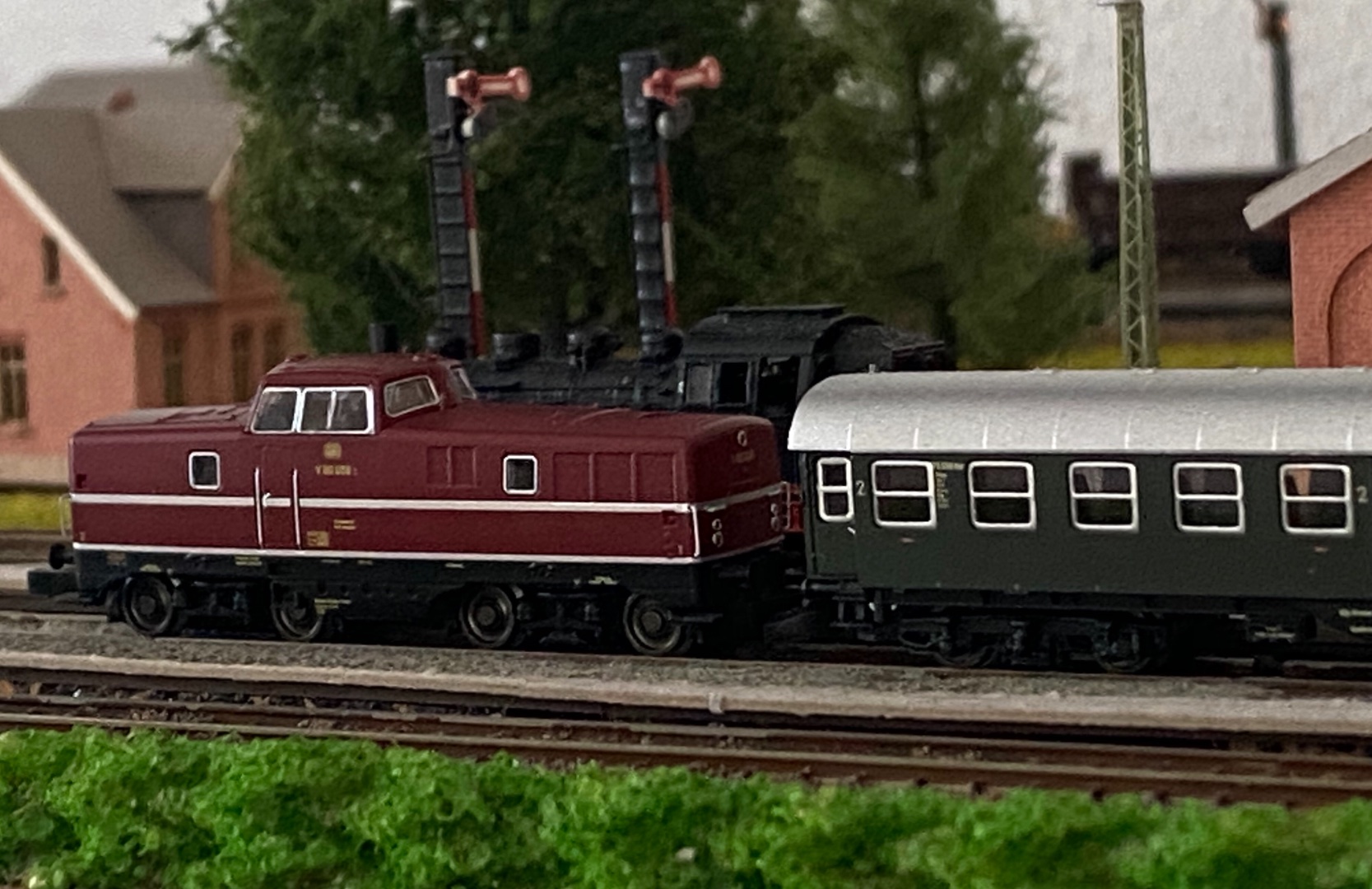 mir gefällt es sehr gut, dass die V80 ohne rote Schlussleuchten daher kommt. Wendezug im Betriebszustand von 1957 hat Märklin nicht im Sortiment, daher soll die Lok ihren Zug schleppen und dafür braucht sie keine roten Schlussleuchten.
