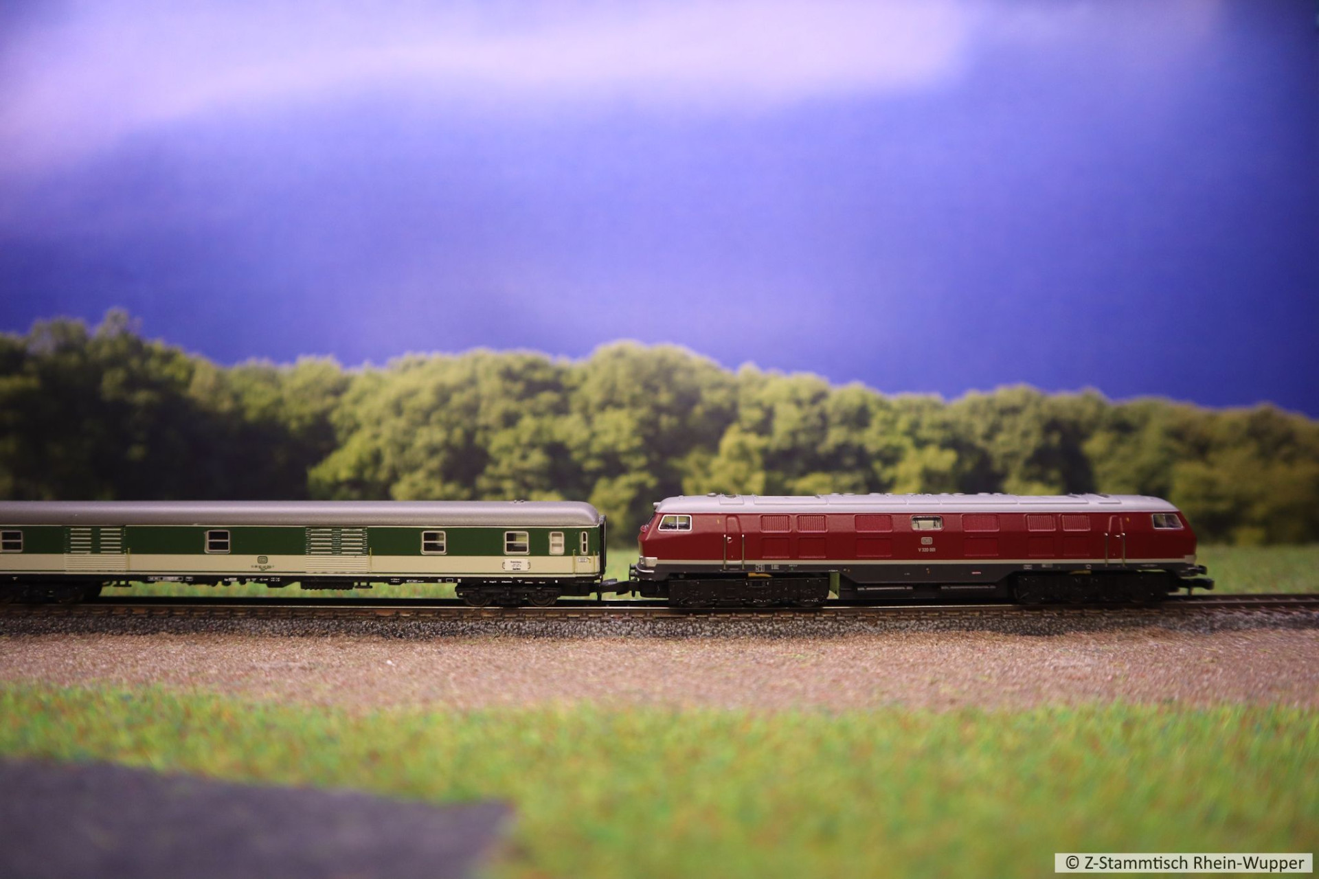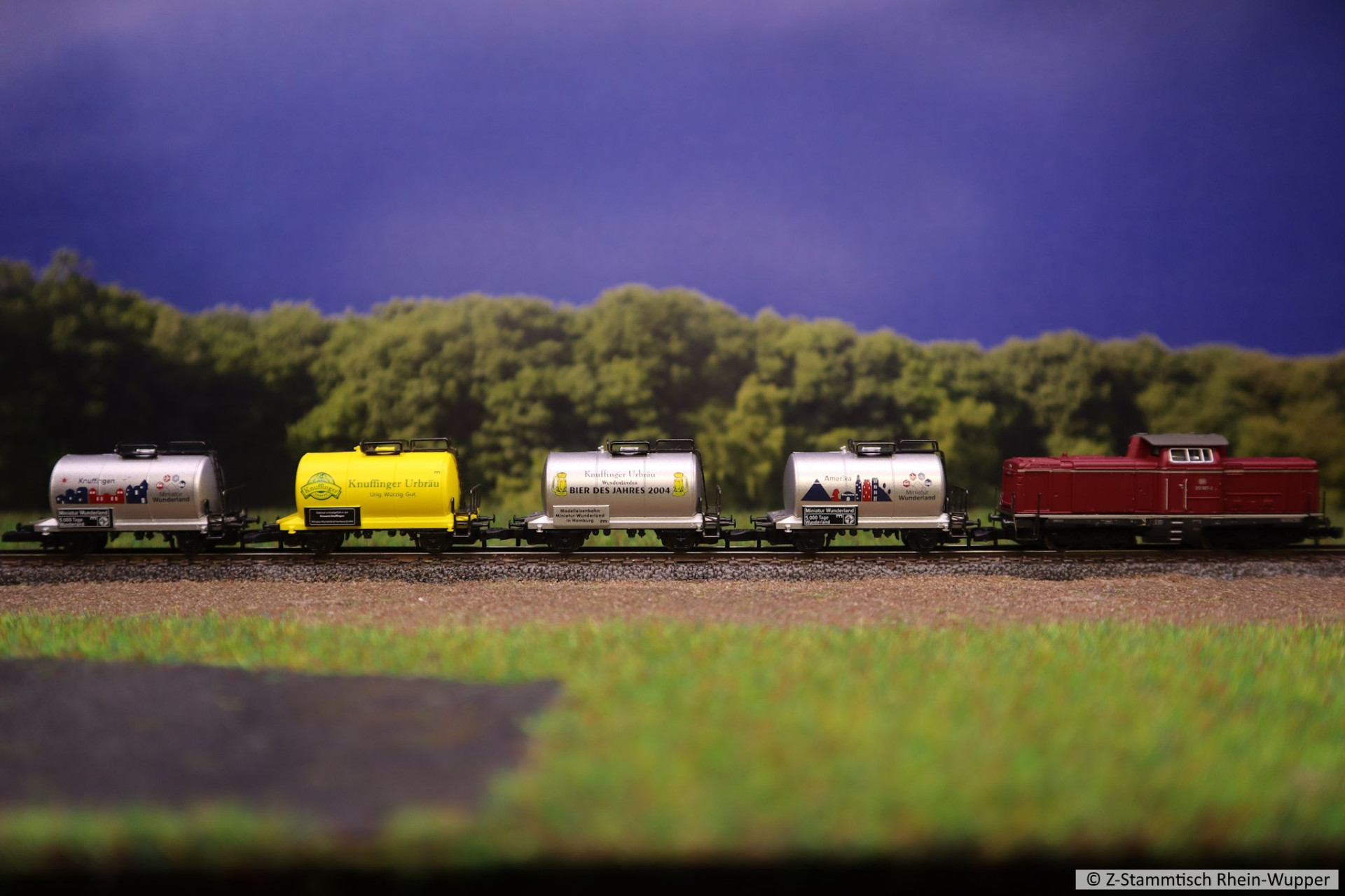 Als erstes ging unser Stammtischzug auf die Runde. Als Lok ein Versuch einer eigenen Lackierung von mir von vor ein paar Jahren.