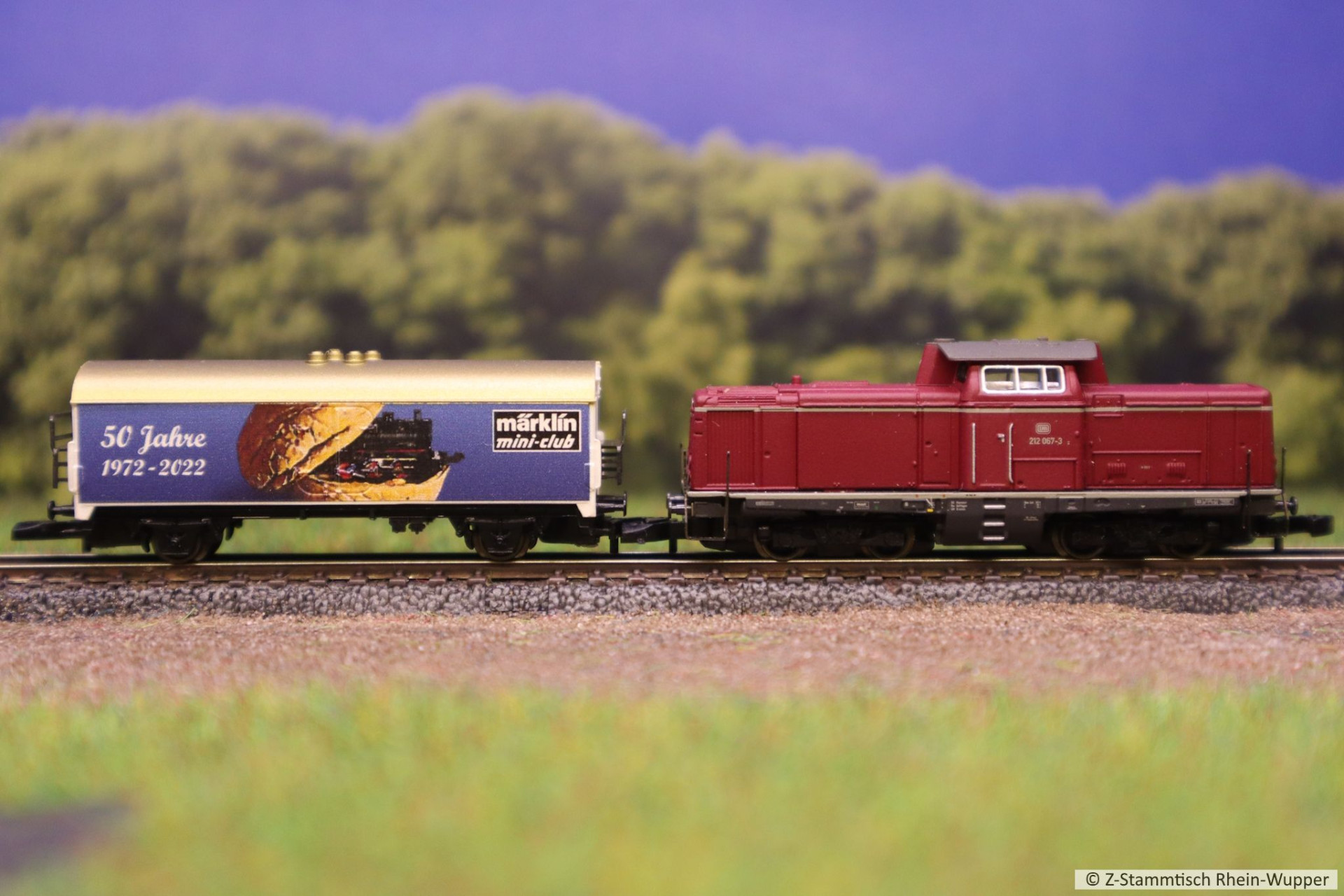 Zum Start drehte unsere Stammtischzug seine Runden. Diesen Monat ergänzt mit einem Gastwagon vom Stammtisch Schorndorf (8612.047)