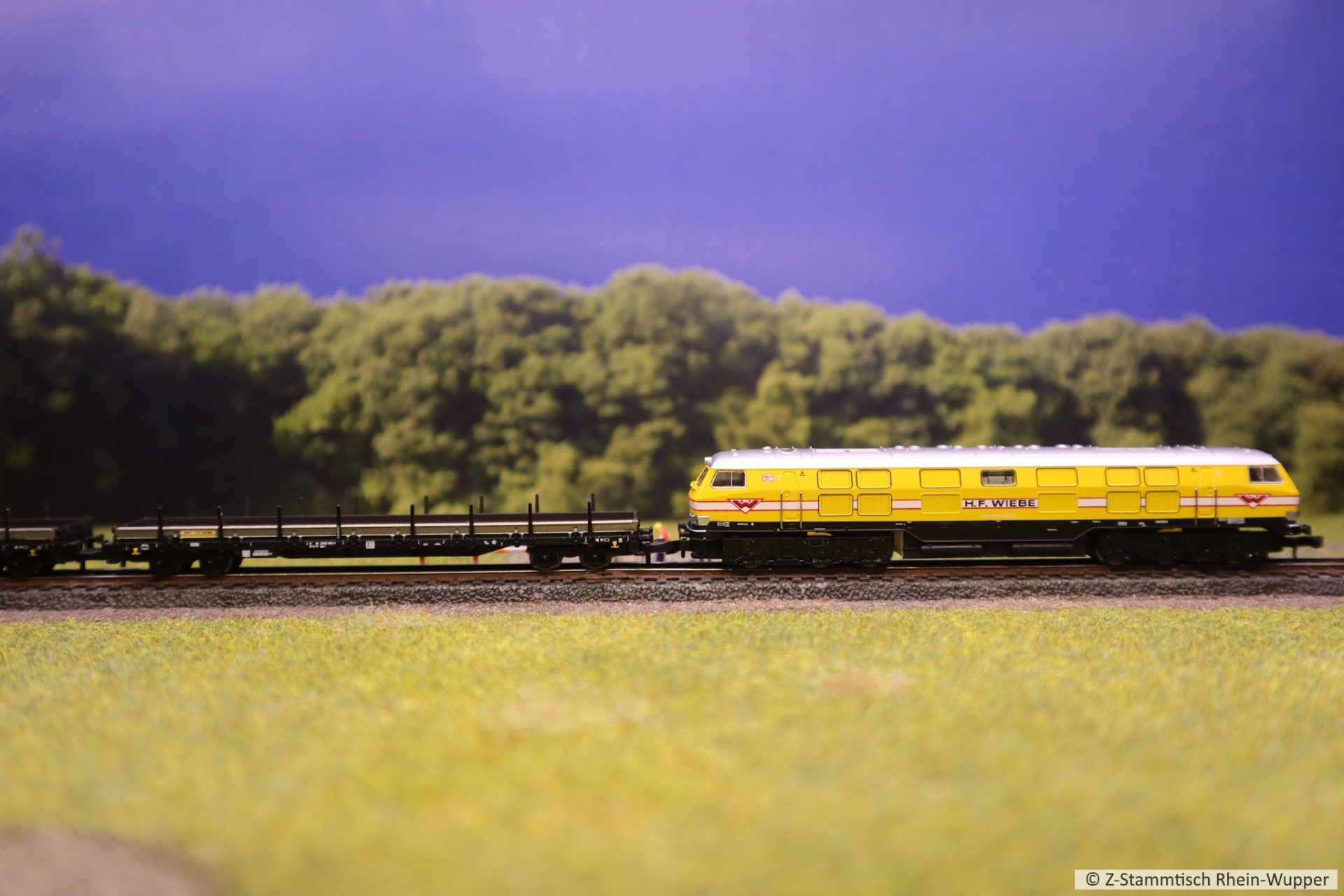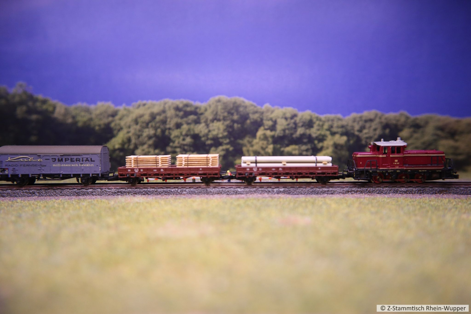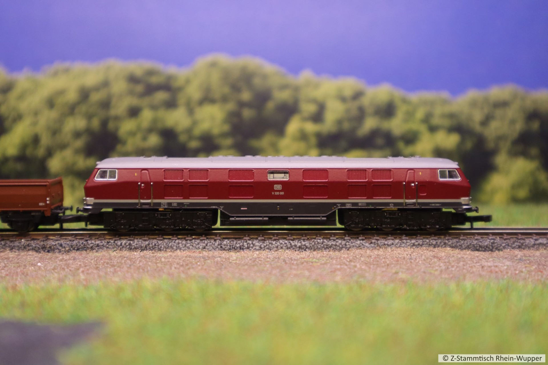 Aus Göppingen zurück und so nun für den Einsatz am Stammtisch geeignet, die V320 von Wiebe mit ihrem Bauzug