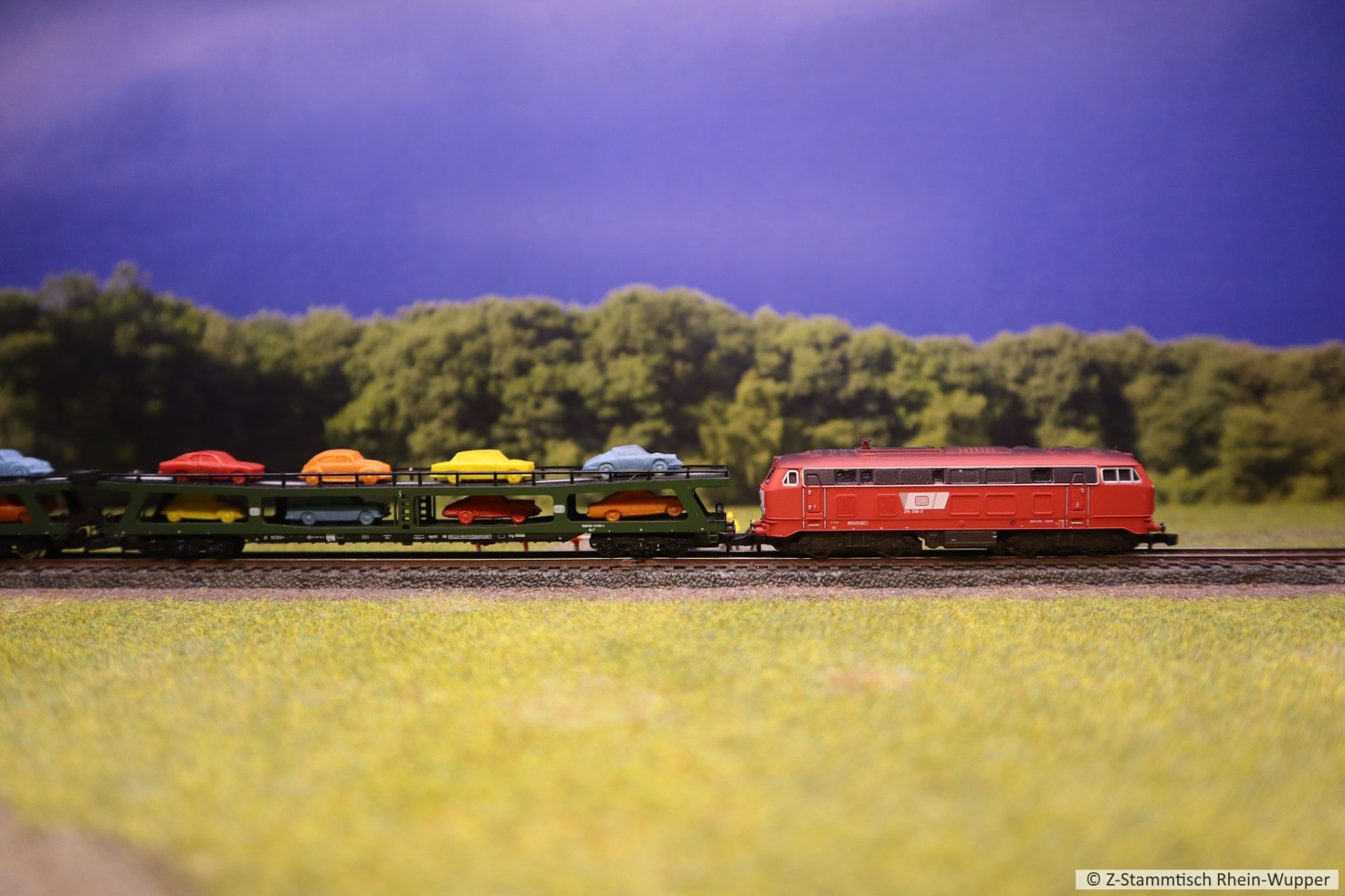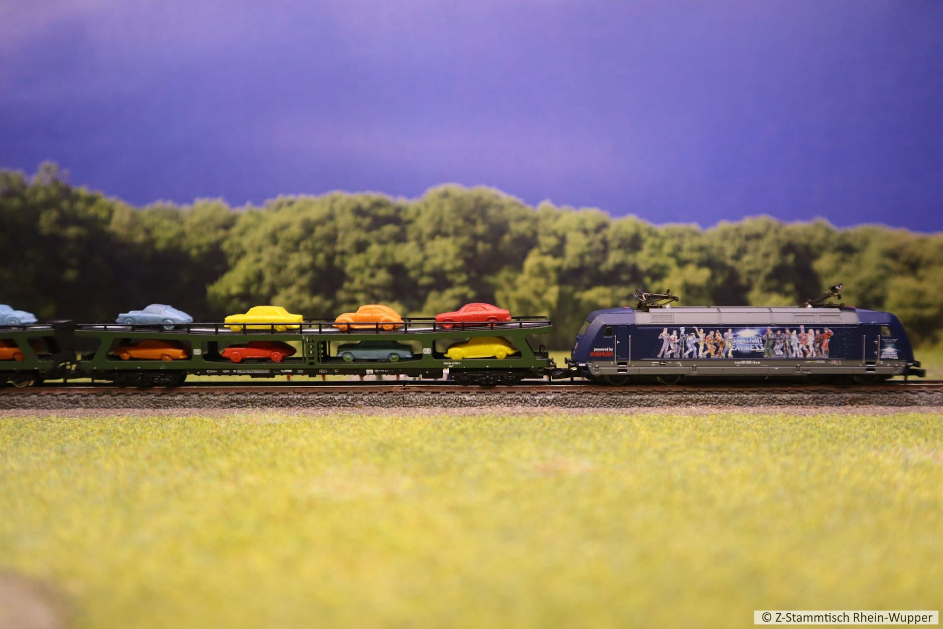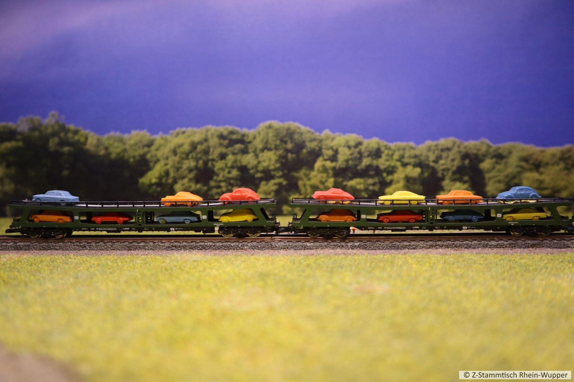 Der Autozug, von der Testanlage wurde auch auf den Stammtischbrettchen zum Ablichten fahren gelassen.