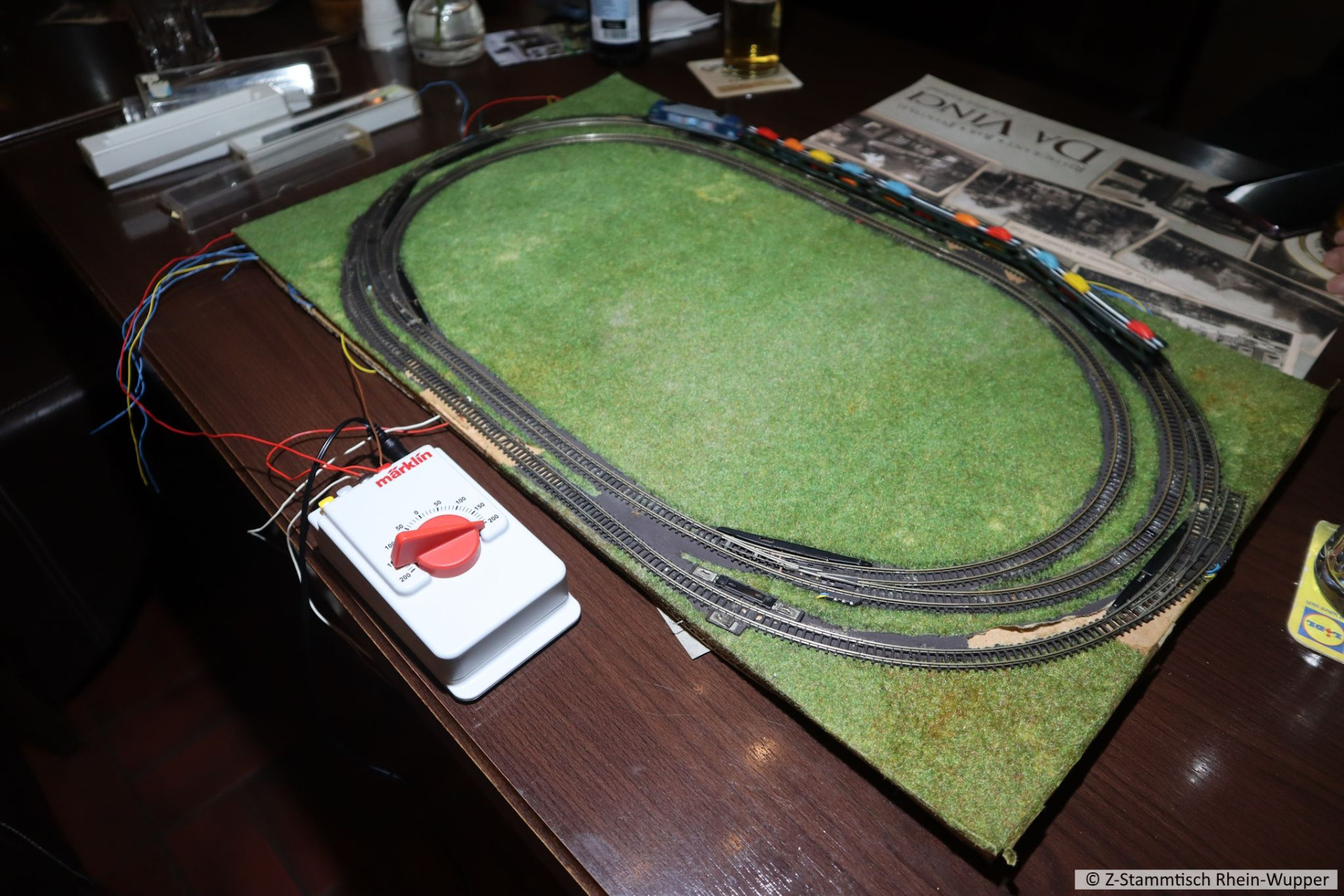Zum einen ein Testkreis, wo unser Stammtischnachwuchs zuhause seine Züge kreisen lassen darf