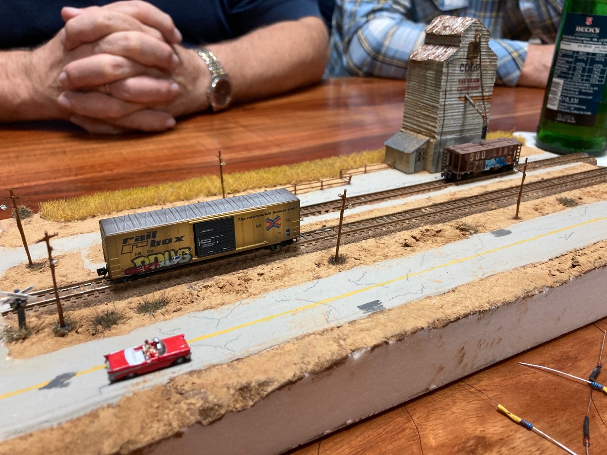 Das Silo, wie auch die Lampen und die Kennzeichnung des Bahnüberganges ist alles selbst gebaut.