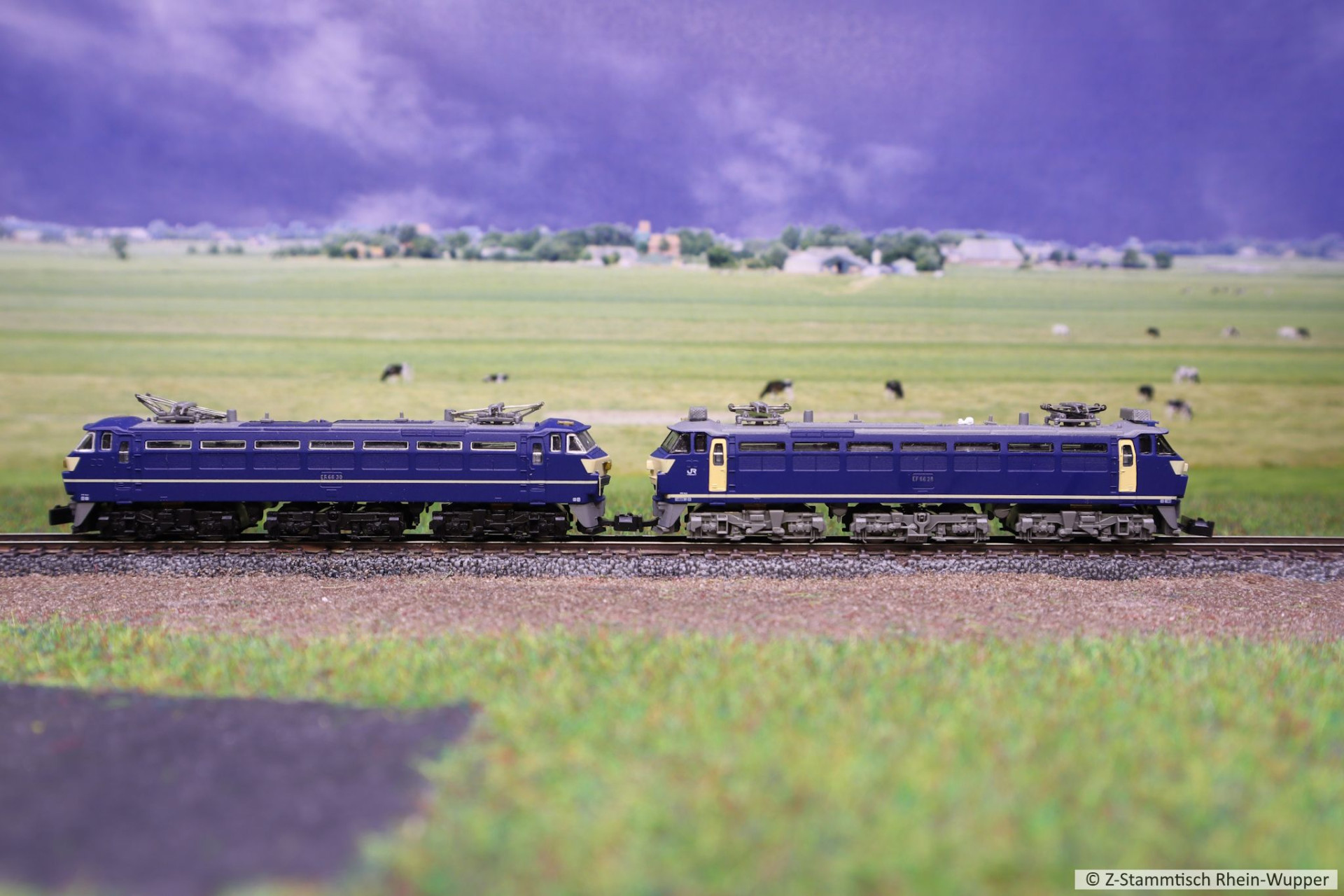 Eine der EF66 von Rokuhan ist dann noch mit Personenwagen von Tenshodo auf den Gleisen unterwegs gewesen
