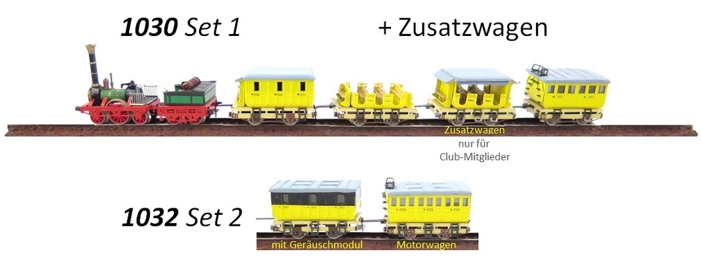 Nach meinen neusten Erkenntnissen setzt sich der komplette Adlerzug aus Set 1 (#1030) mit Zusatzwagen und Set 2 (#1032) zusammen,