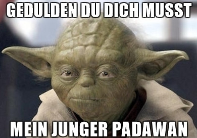 Gedulden ich muss, zu Ende nun ist. Haben gefunden nichts. Junger Padawan traurig nun ist.