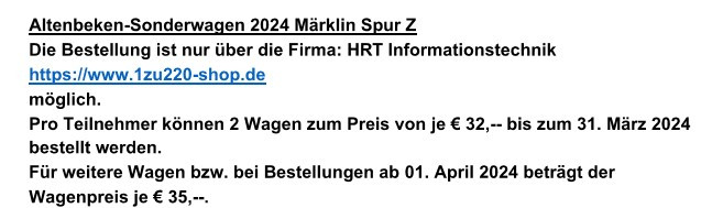 bitte nicht verwechseln: ZFI Jahreswagen ist nicht Altenbeken Sonderwagen.