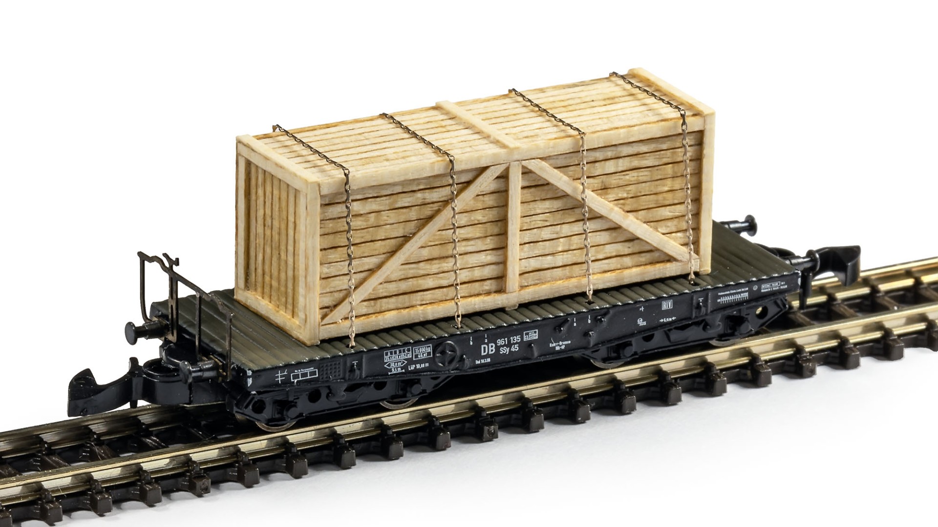 Here is a sample of usage of these chains - for example, for fixing some kinds of loads on flatcars. The difference in level of details between chains and handrails is especially visible on these photos: