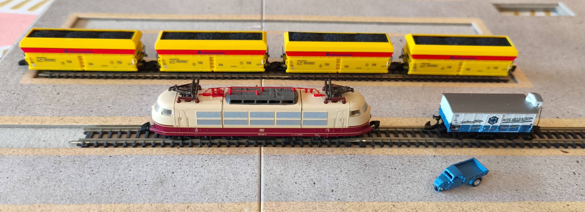 Ein Schnäppchen gemacht (103, Variante 88543) und bei märklin zugeschlagen. Bei 25 Minuten Wartezeit hatte ich genug Zeit zu überlegen, wie viele EH Wagen ich zur Verlängerung brauche