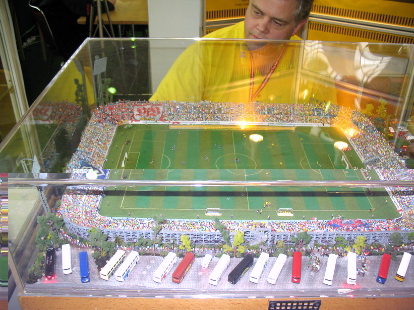 11129 Figuren, davon 4923 sitzend, 817 LEDs, davon 5 kaputt, unzählige Busse, davon nur drei Erstligavereinsbusse .