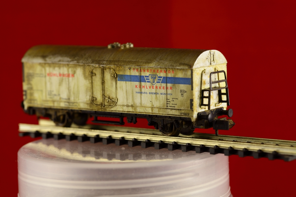 Für die Lok schwebt mir ein totes Gleis vor, es kommt noch Moos dazu und ein Bäumchen wächst irgendwo heraus....