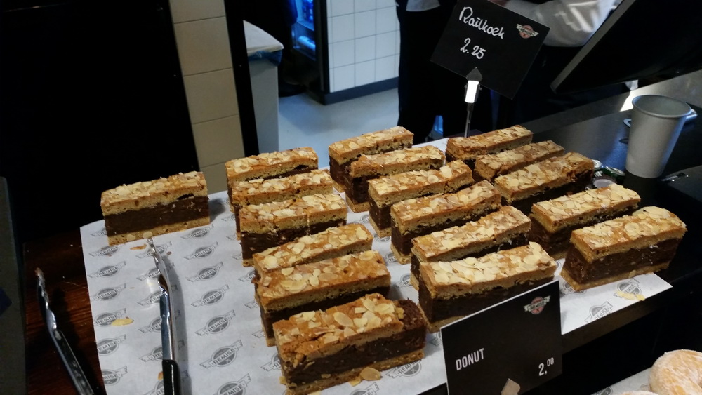 Hunger bekommen. 2 x Bratwurst geholt und einen Kaffee. 14.- EUR. Normale Preise. Wir hätten auch ans Büffee gehen können, war aber rappelvoll. Einzig Pommes aus dem Automaten hätte es schneller gegeben. Haupt-Attraktion am Büffee war der Schienenkuchen.